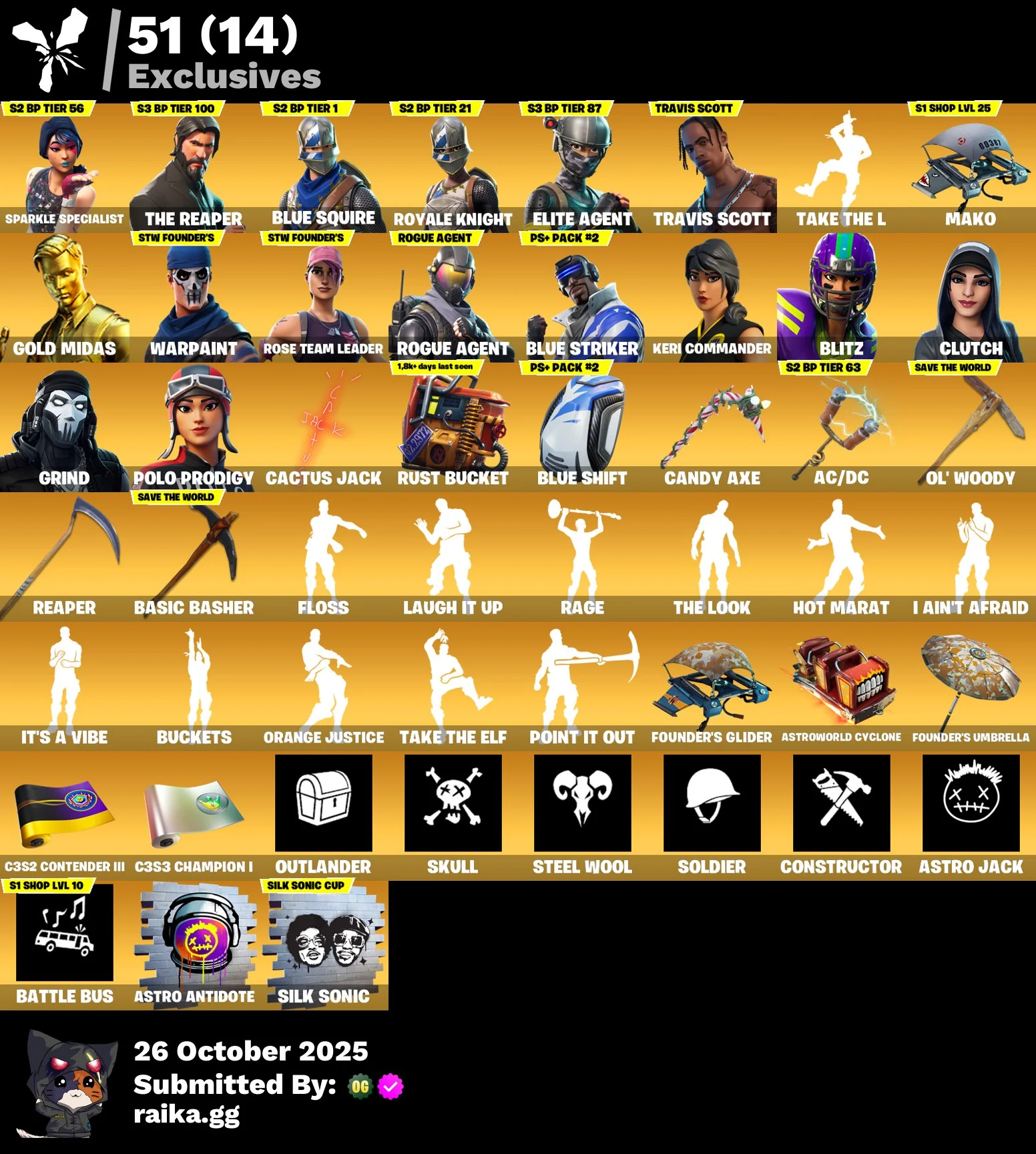 [PC/PSN/XBOX] 234 skins | OG STW | Sparkle Specialist | The Reaper | Blue Squire | Royale Knight | Elite Agent | Travis Scott | Gold Midas | Rogue Agent | 400 VB