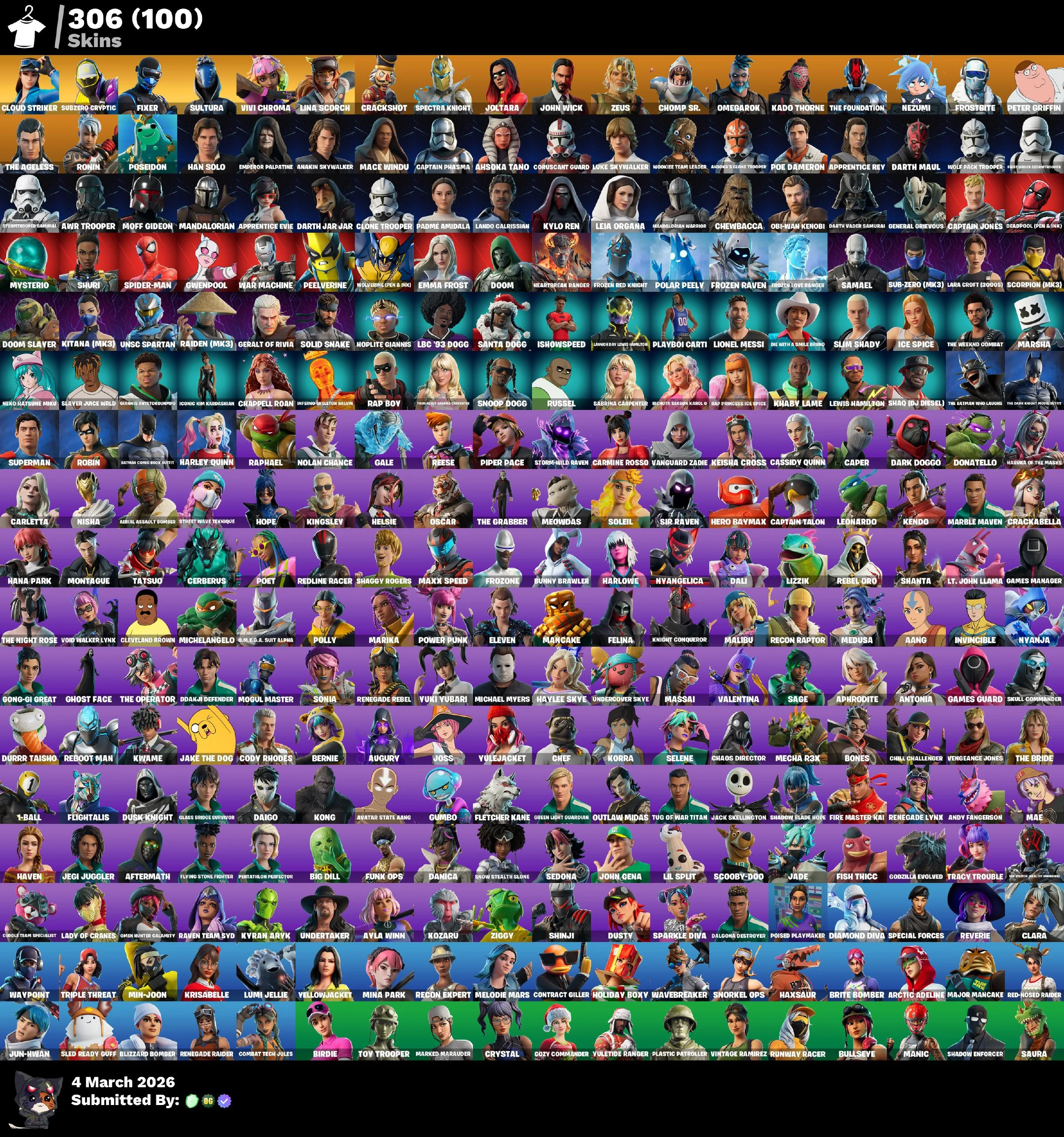 [PC/PSN/XBOX] 306 skins | Renegade Raider | Cloud Striker | Subzero Cryptic | Fixer | Sultura | Vivi Chroma | Lina Scorch | Crackshot | Spectra Knight | 1150 VB