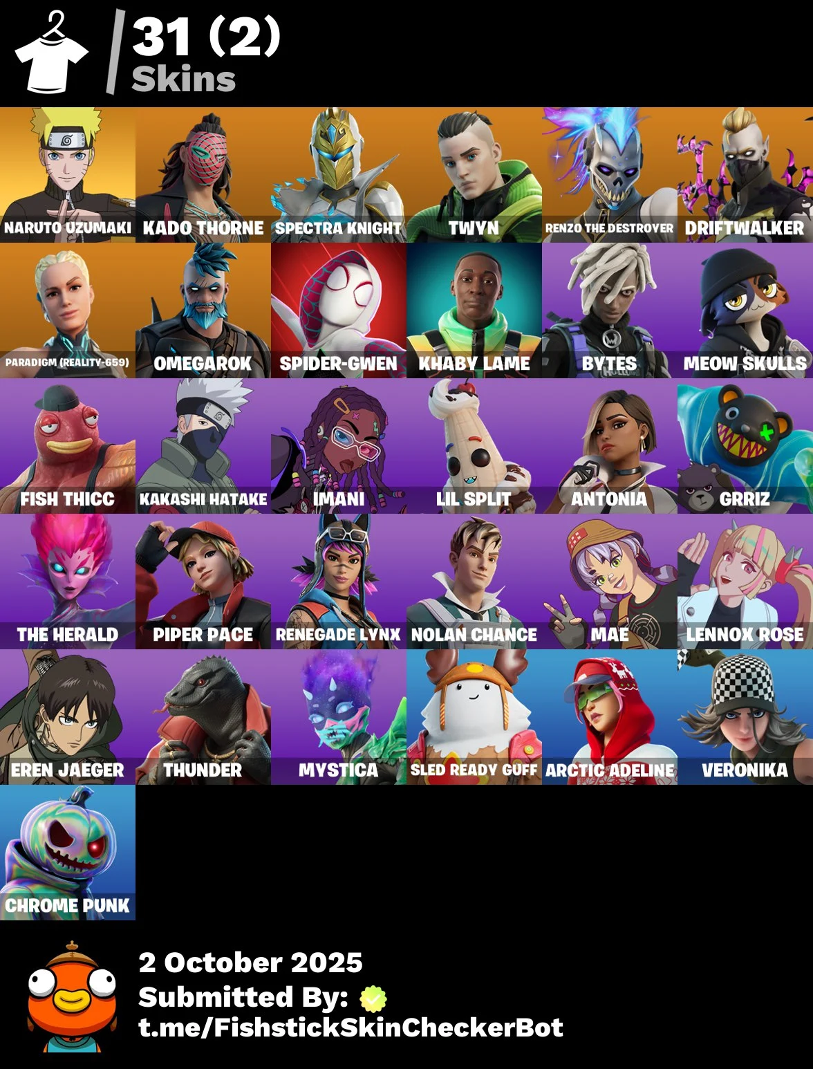 [PC/PSN/XBOX] 31 skins | Naruto Uzumaki | Kakashi | Eren Yager | Kado Thorne | Spectra Knight | Twyn | Renzo the Destroyer | Driftwalker | Paradigm (Reality-659) | Omegarok | 150 VB