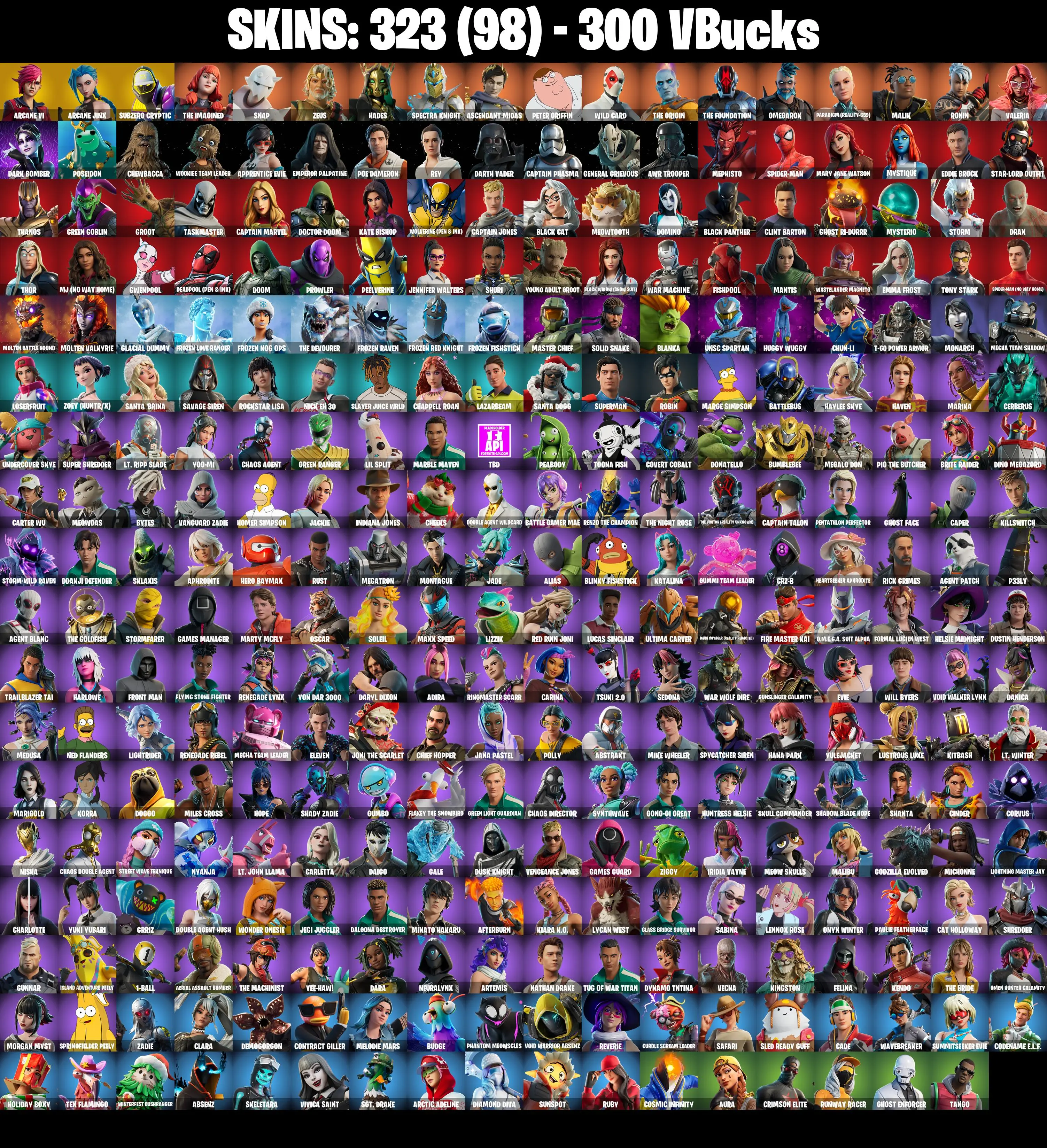 (PC/PSN/XBOX) 323 SKINS 💫 Master Chief ⚡️ Arcane Vi 💍 Arcane Jinx ⚡️ Subzero Cryptic 💍 The Imagined ⚡️ Snap 💍 Zeus ⚡️ Hades | 300 V-Buck | PARENTAL CONTROLS