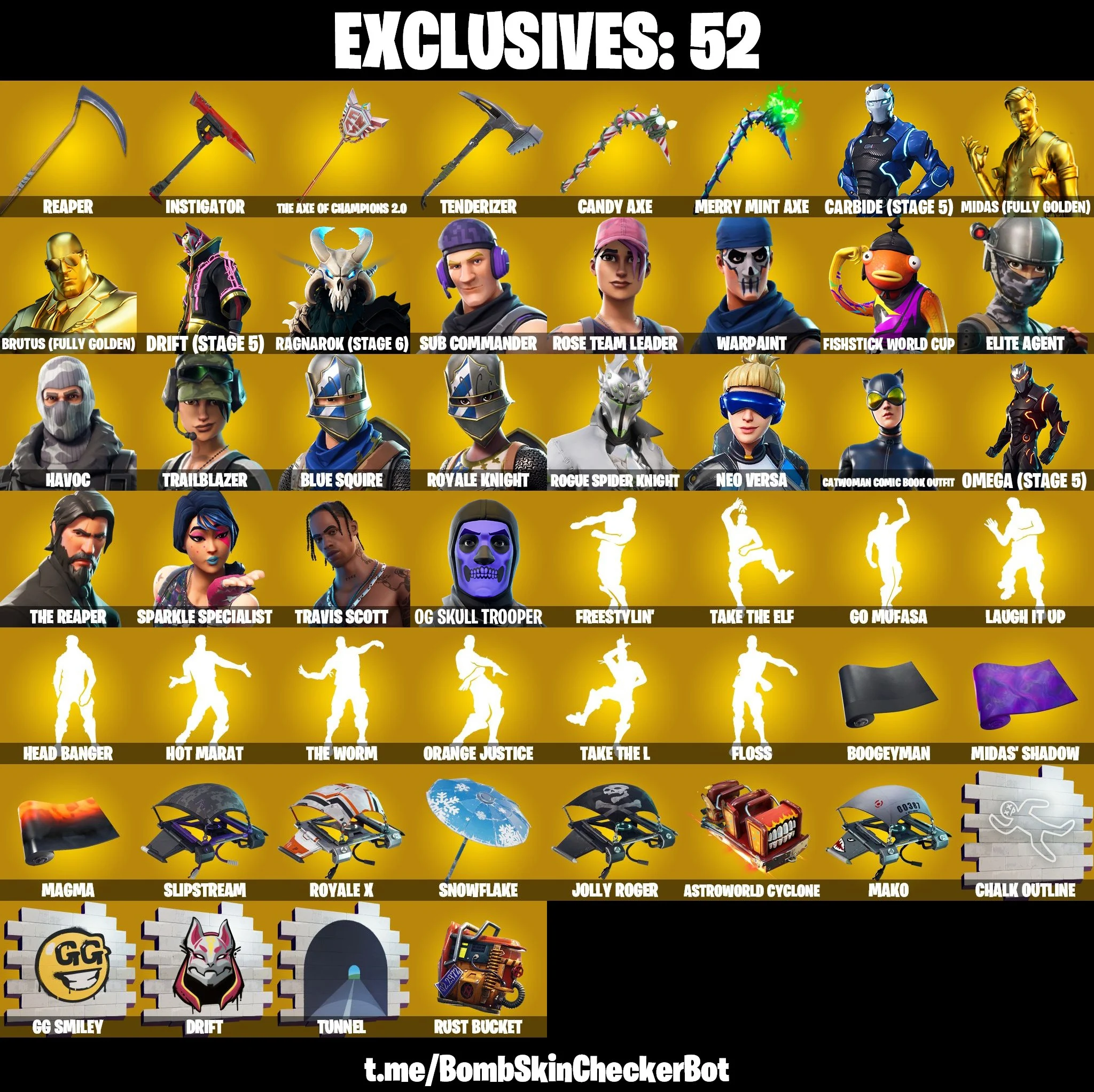 [PC/PSN/XBOX] 354 Skins | OG STW | OG Skull Trooper | Rogue Spider Knight | Travis Scott | Merry Mint Axe | Sparkle Specialist | The Reaper | Havoc | Freestyling | Take the L