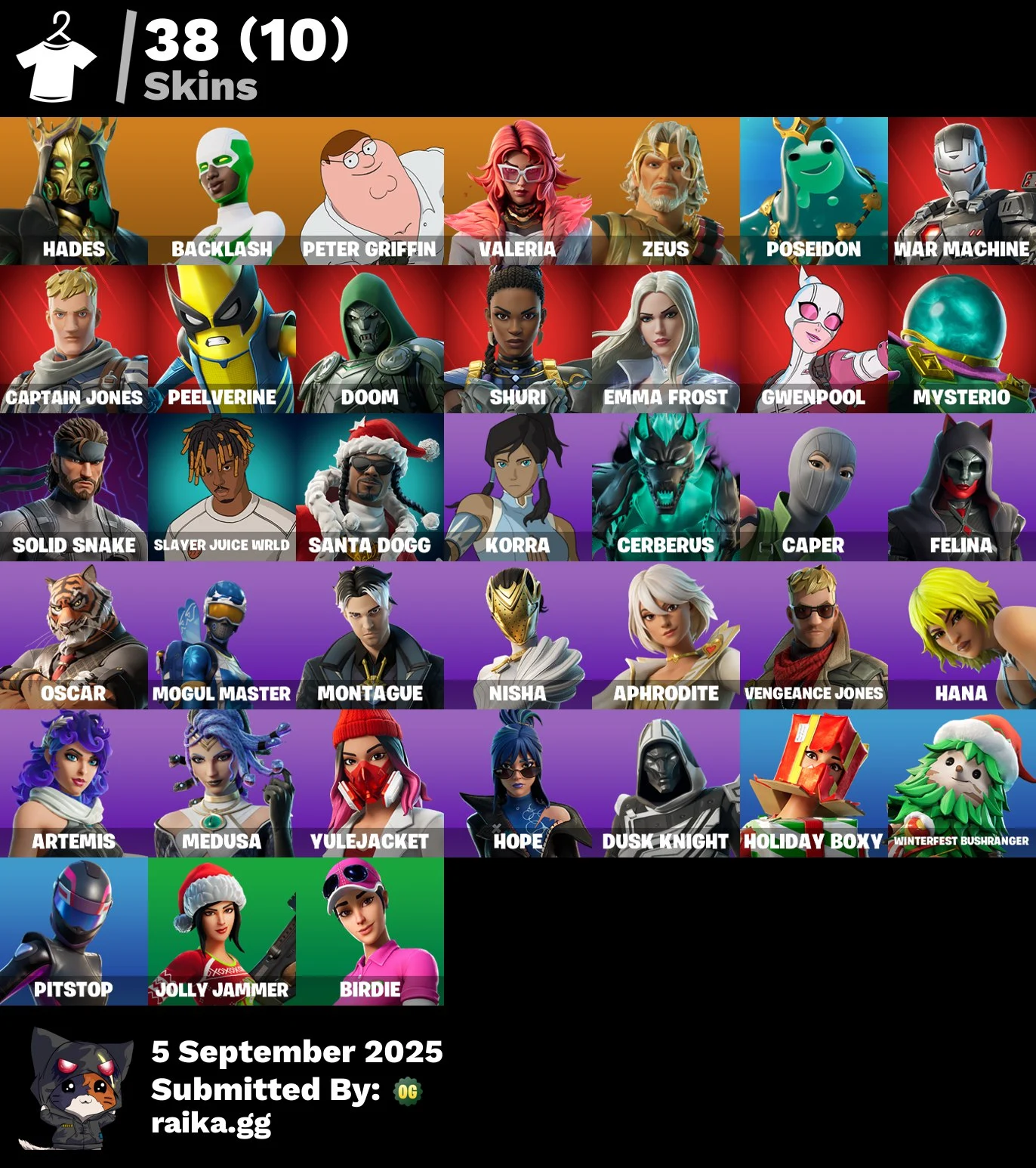 ⭕️ PC/PSN/XBOX⭕️ 38 skins | Hades | Backlash | Peter Griffin | Valeria | Zeus | Poseidon | War Machine | Captain Jones | Peelverine | Doom | Shuri | #S5