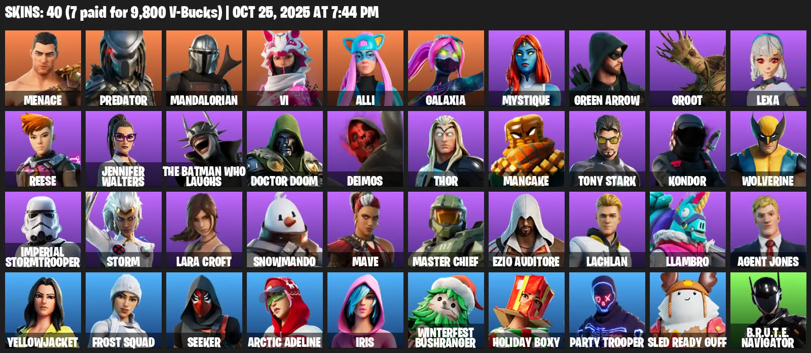 [PC/PSN/XBOX] | 40 skins | Leviathan Axe | Lara Croft | Menace | Predator | Mandalorian | Vi | Alli | Galaxia | Mystique | #KEI2216 | #MBFN
