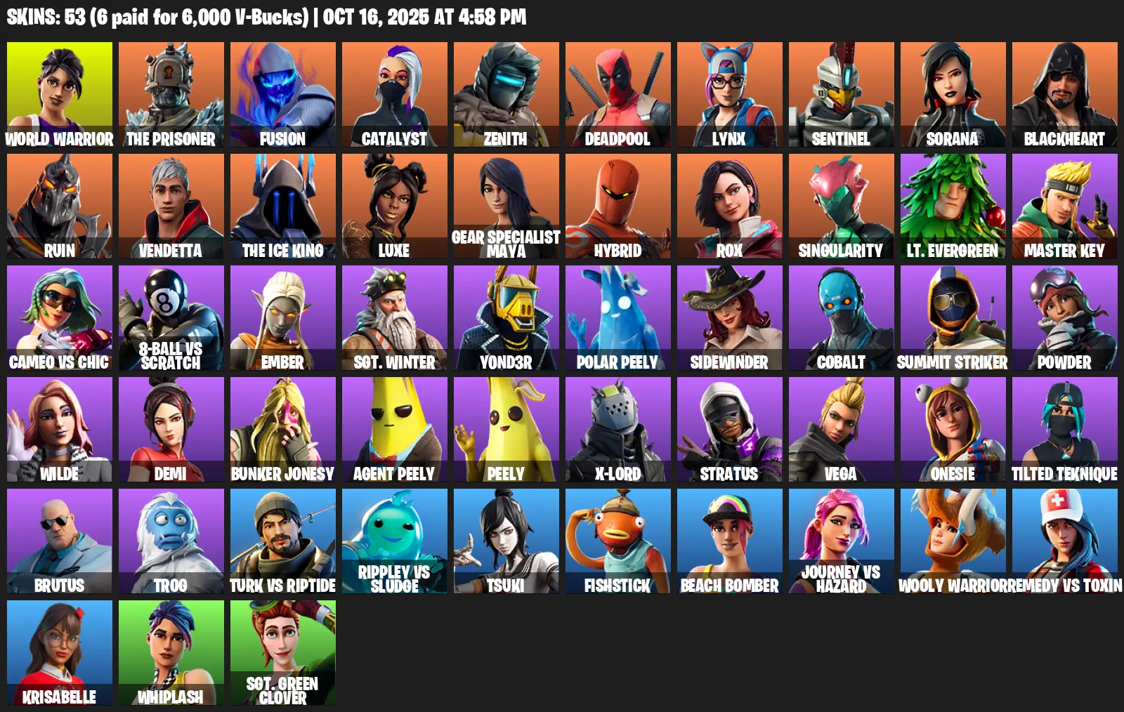[PC/PSN/XBOX] | 53 skins | World Warrior | The Prisoner | Fusion | Catalyst | Zenith | Deadpool | Lynx | Sentinel | Sorana | #RZW1116 | #MBFN