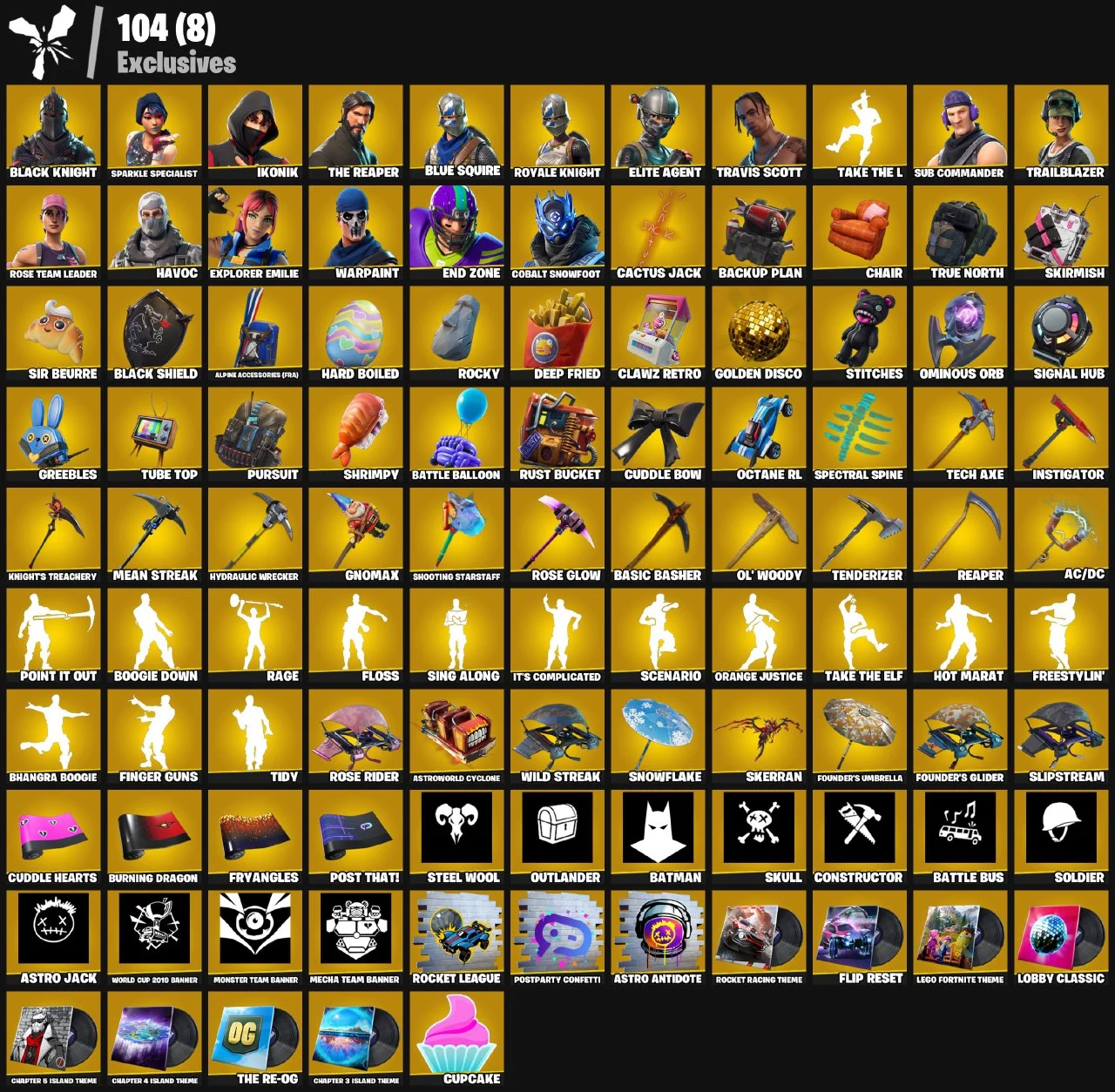 ⭕PC/PSN/XBOX⭕135 Skins + IKONIK + Black Knight + Travis Scott + The Reaper + Blue Squire + Royale Knight + Floss + Take The L + Sparkle Specialist + Sub-Commander + Havoc + Trailblazer + OG Save The World + Omega + Calamity + DRIFT | 700 Vb