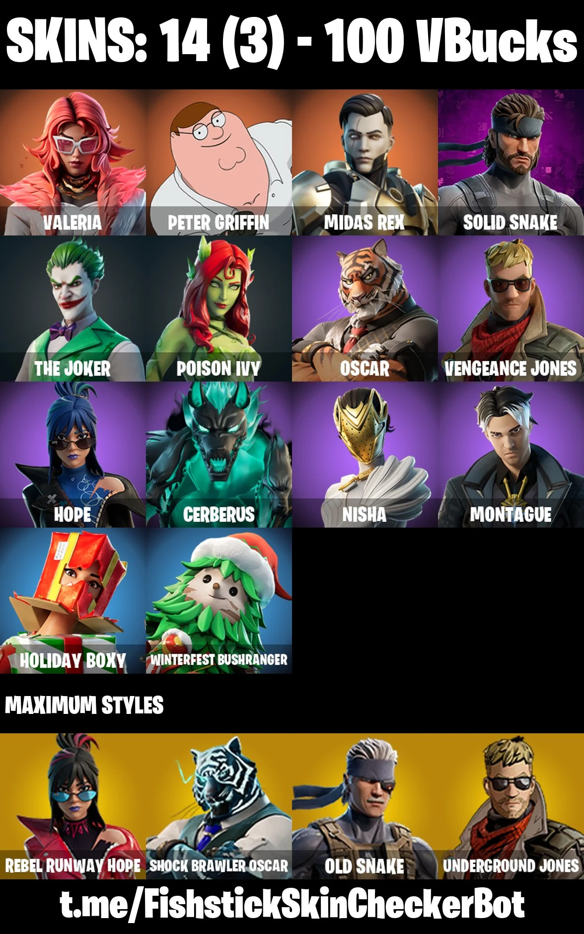 【PC/PSN/XBOX】14 Skins | Valeria | Peter Griffin | Midas Rex | Solid Snake | The Joker | Poison Ivy | Oscar | Vengeance Jones