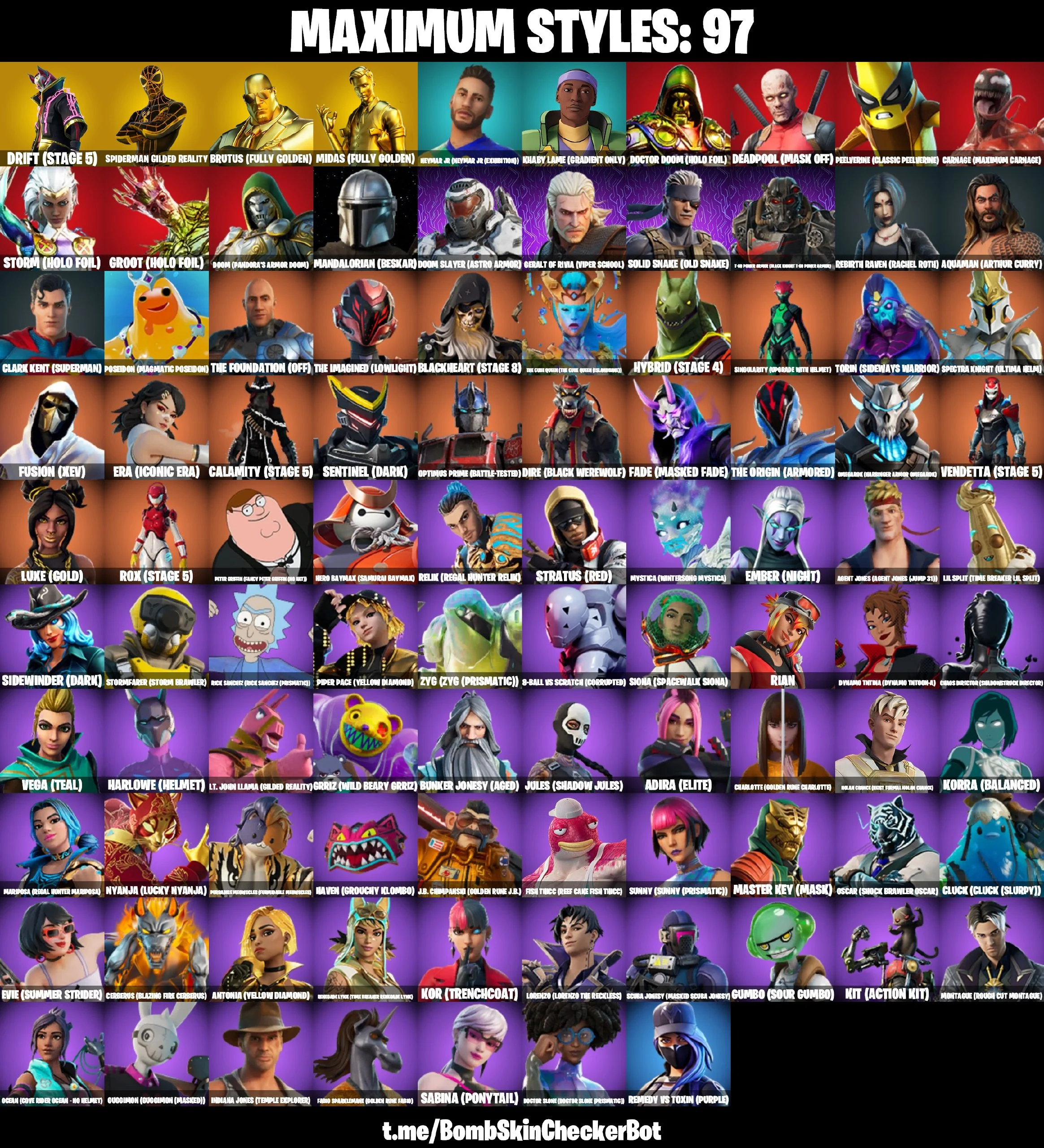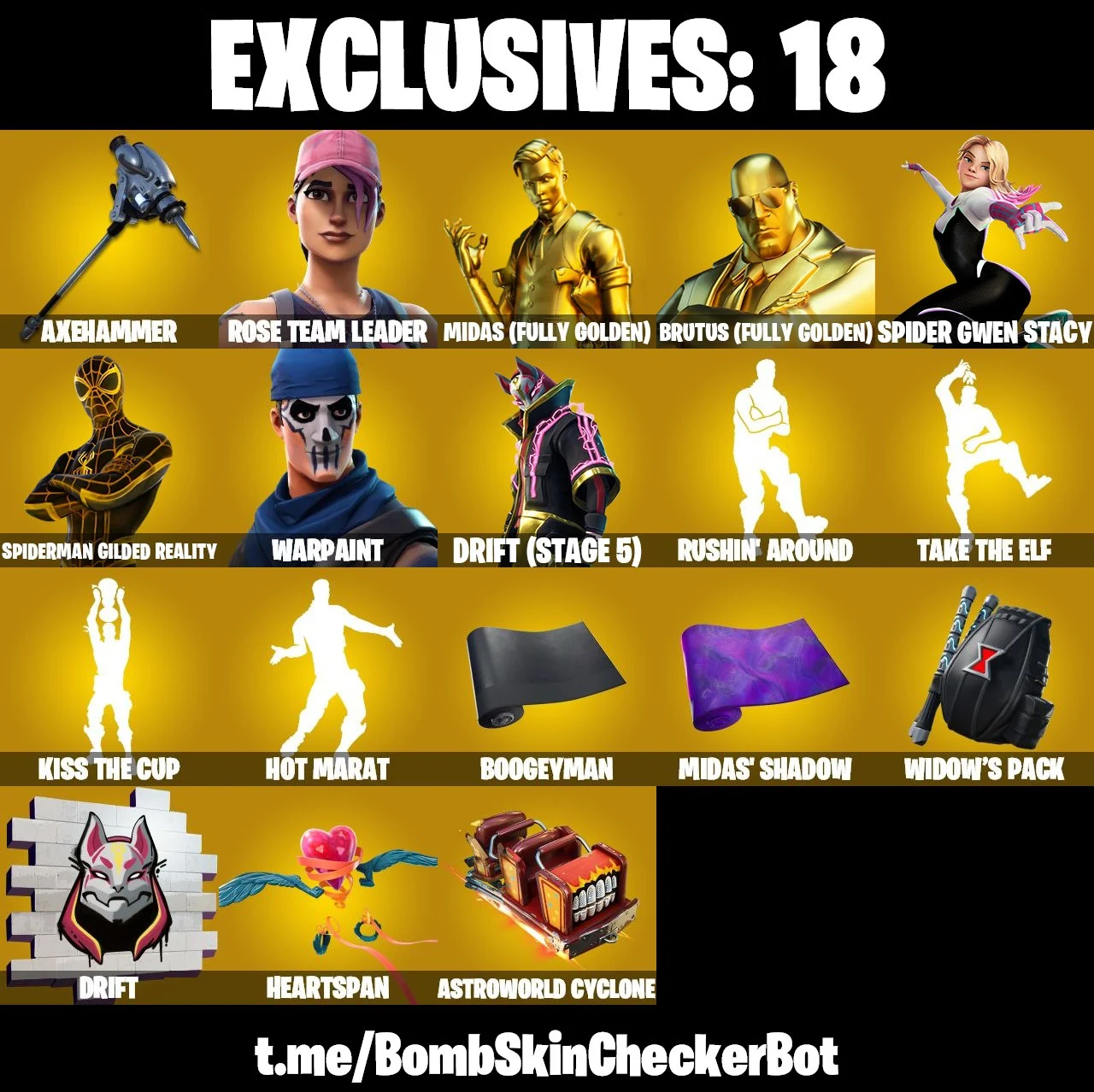 âĄïļPC/PSN/XBOXâĄïļðŪ242 SkinsðŪ AxehammerðSpidergwen (Stacy)ðHot MaratðOG STWðKiss The CupðMidas (Fully Golden)ðTake The ElfðRushin AroundðTony StarkðDarth VaderðCrystalðLara CroftðNeymar Jr