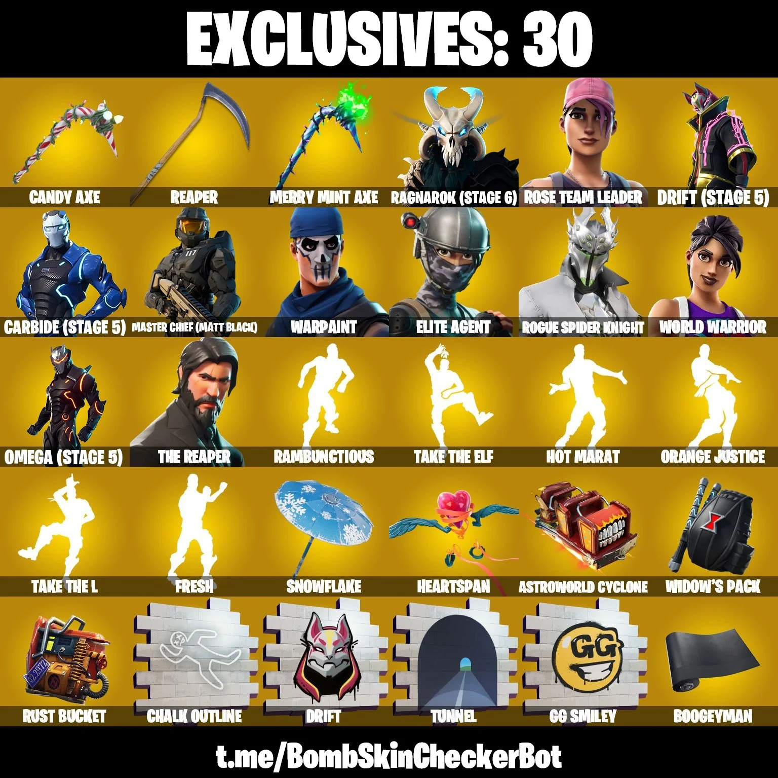 âĄïļPC/PSN/XBOXâĄïļðŪ369 SkinsðŪ FreshðMerry Minty PickaxeðTake The LðRogue AgentðElite AgentðRogue Spider KnightðTake The ElfðPeppermint Pick