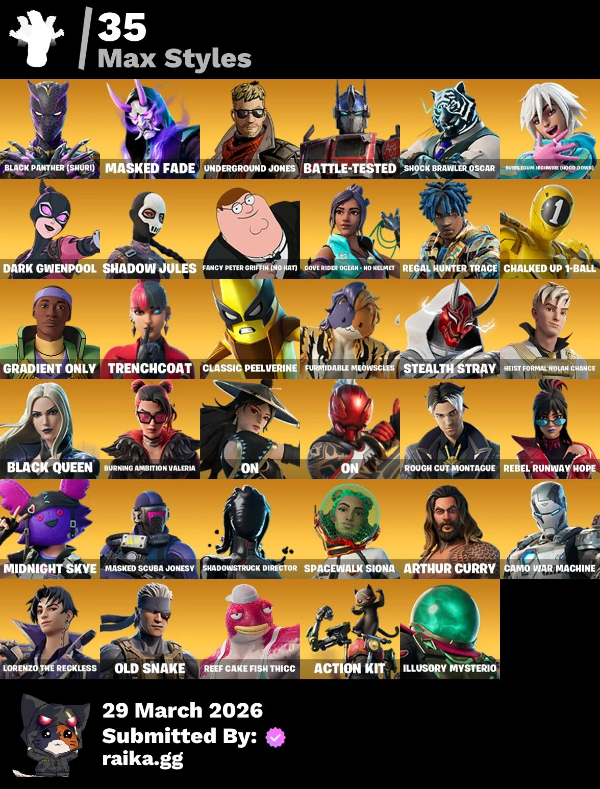 PC/PS/XBOX/SWITCH | 131 Skins | Naruto Uzumaki | Optimus Prime | Predator | Subzero Cryptic | Era | 100 VB