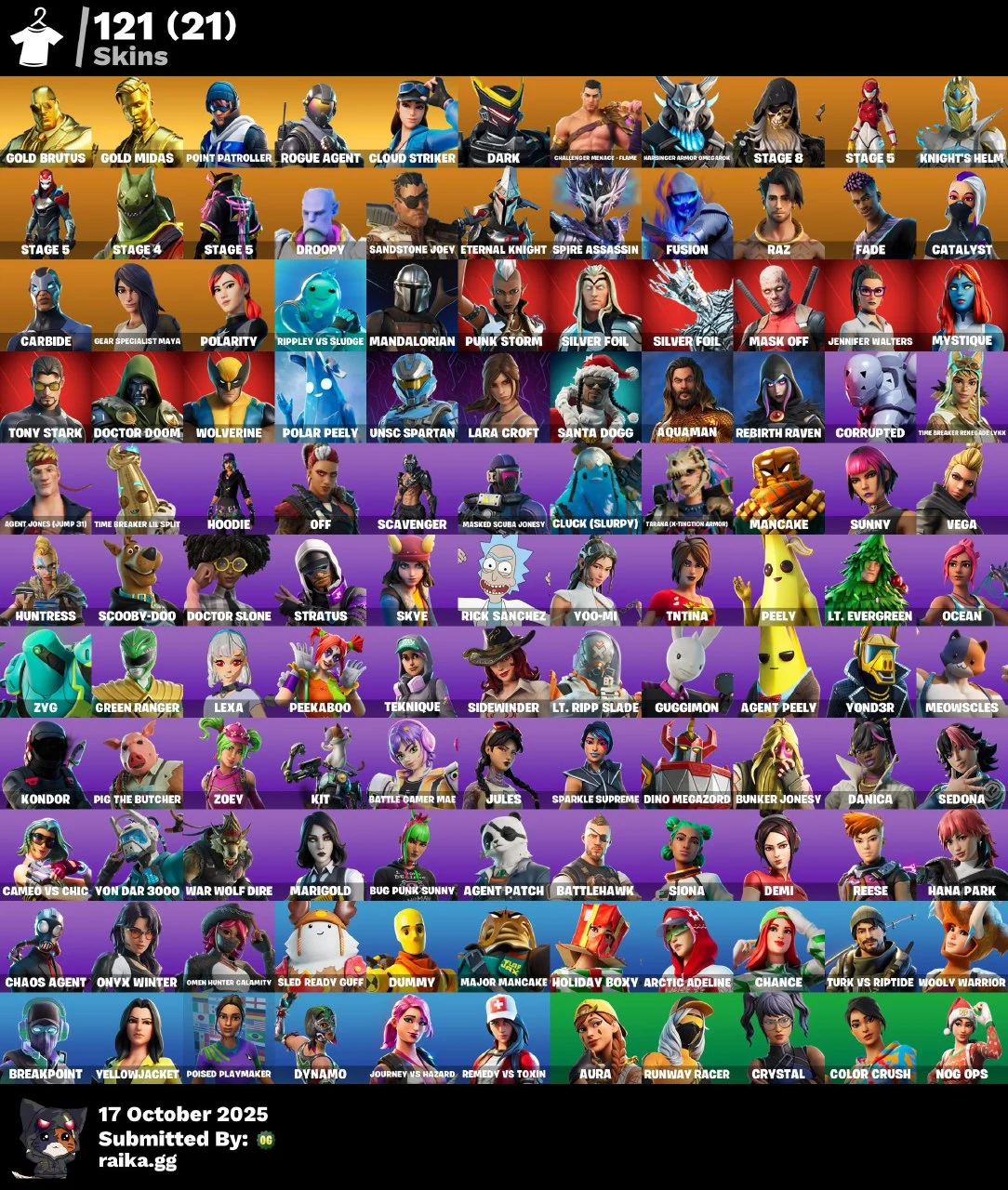[PC/XBOX] 121 skins | Leviathan Axe | Jules | Aura | Lara Croft | Tony Stark | Peely | Harley Hitter | Dynamo lai486