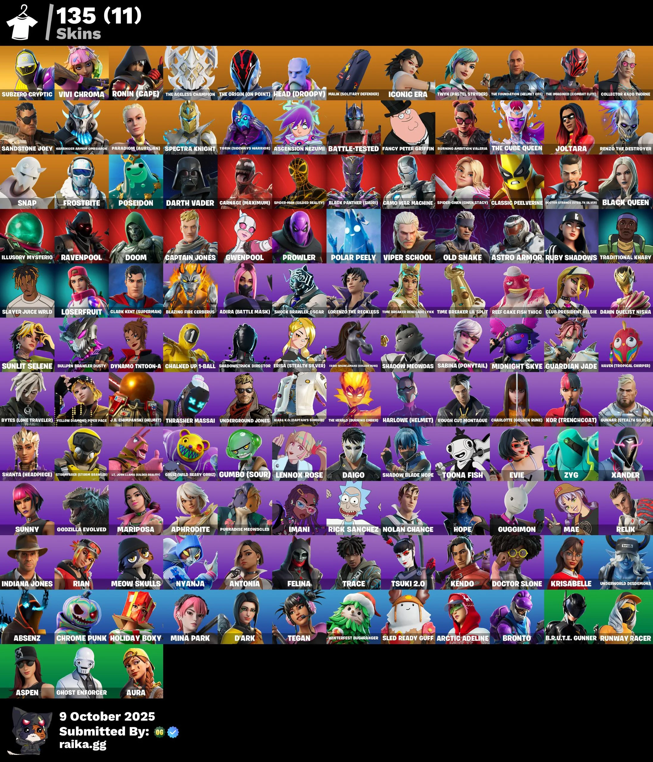 🔥 [PC/XBOX] 135 skins | Aura | Star Wand | Get Griddy | Subzero Cryptic | Vivi Chroma | Ronin (Cape) mshk21