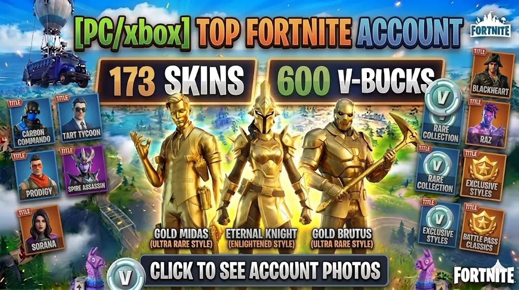 [PC/XBOX] 🎮 173 Skins👕 | Gold Midas👑 | Gold Brutus🥇 | Carbon Commando🤖 | Tart Tycoon🍏 | Predator👽 | Mandalorian🛡 | Spider-Man🕷 | 600 VBucks💸