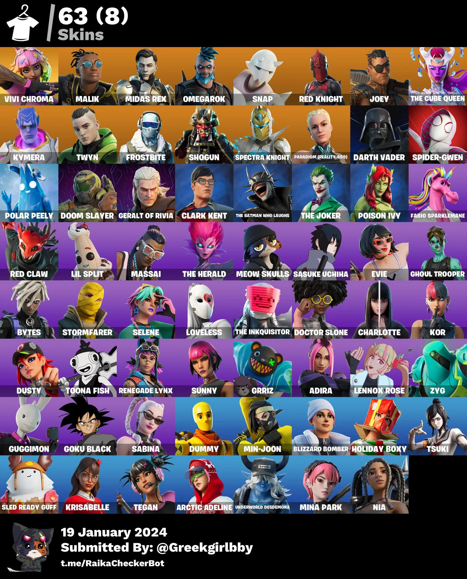 [PC/XBOX] 63 skins | Vivi Chroma | Malik | Midas Rex | Omegarok | Snap | Red Knight | Joey | The Cube Queen | Mail Guarantee