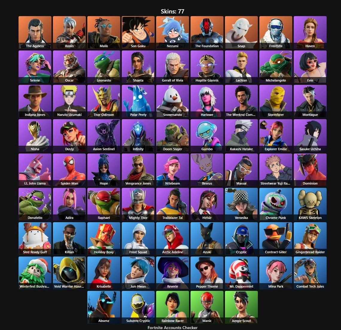 PC/XBOX 77 Skins⚡ | The Ageless | Ronin | Malik | Son Goku | Nezumi | The Foundation | Snap | Frostbite | Haven | Selene | Oscar | Leonardo | Shanta