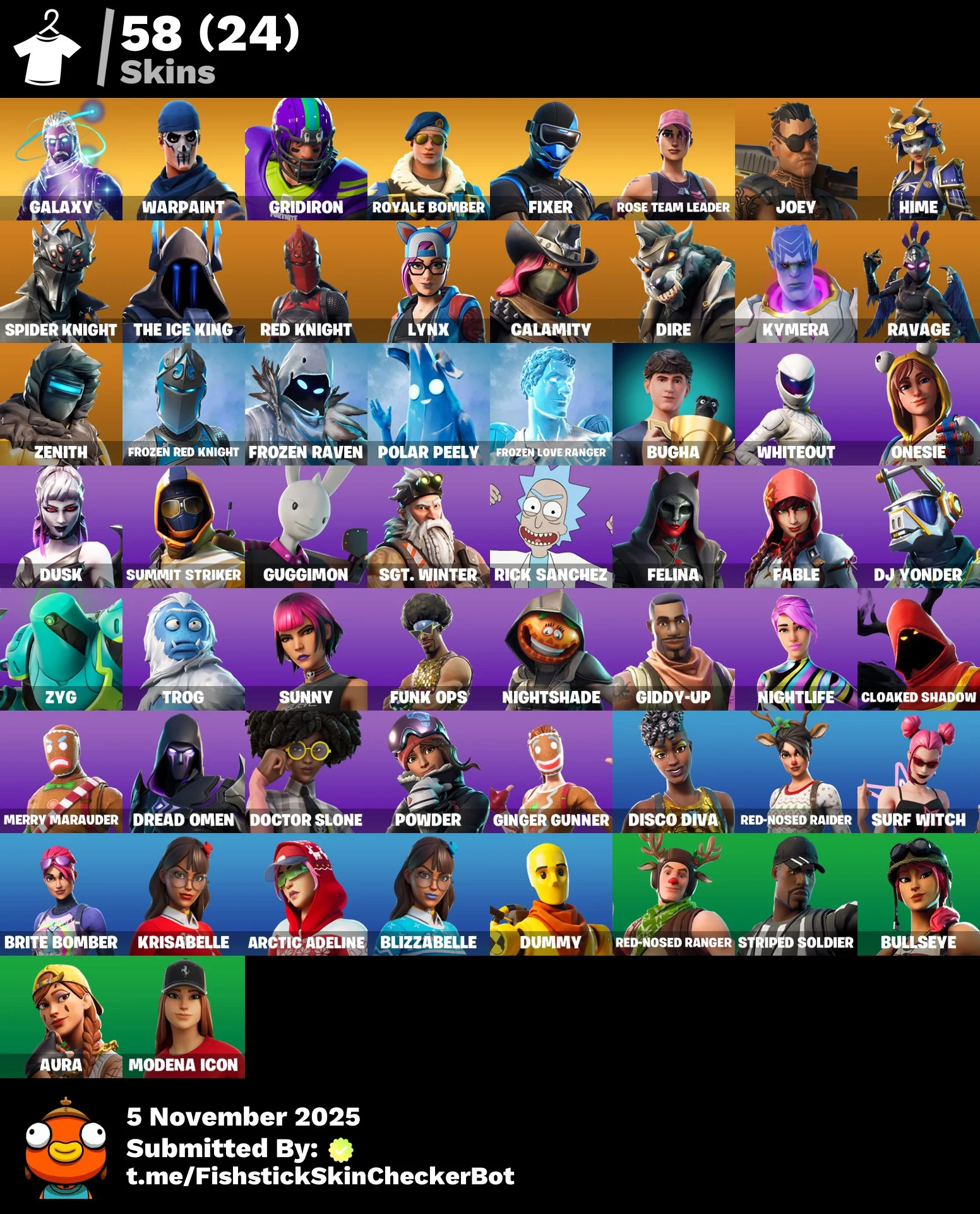 [PC/XBOX/NINTENDO] 58 skins | OG STW | Galaxy | Gridiron | Royale Bomber | Fixer | Joey | Hime | Spider Knight | The Ice King | Red Knight | Lynx | Calamity | Dire | 1350 VB