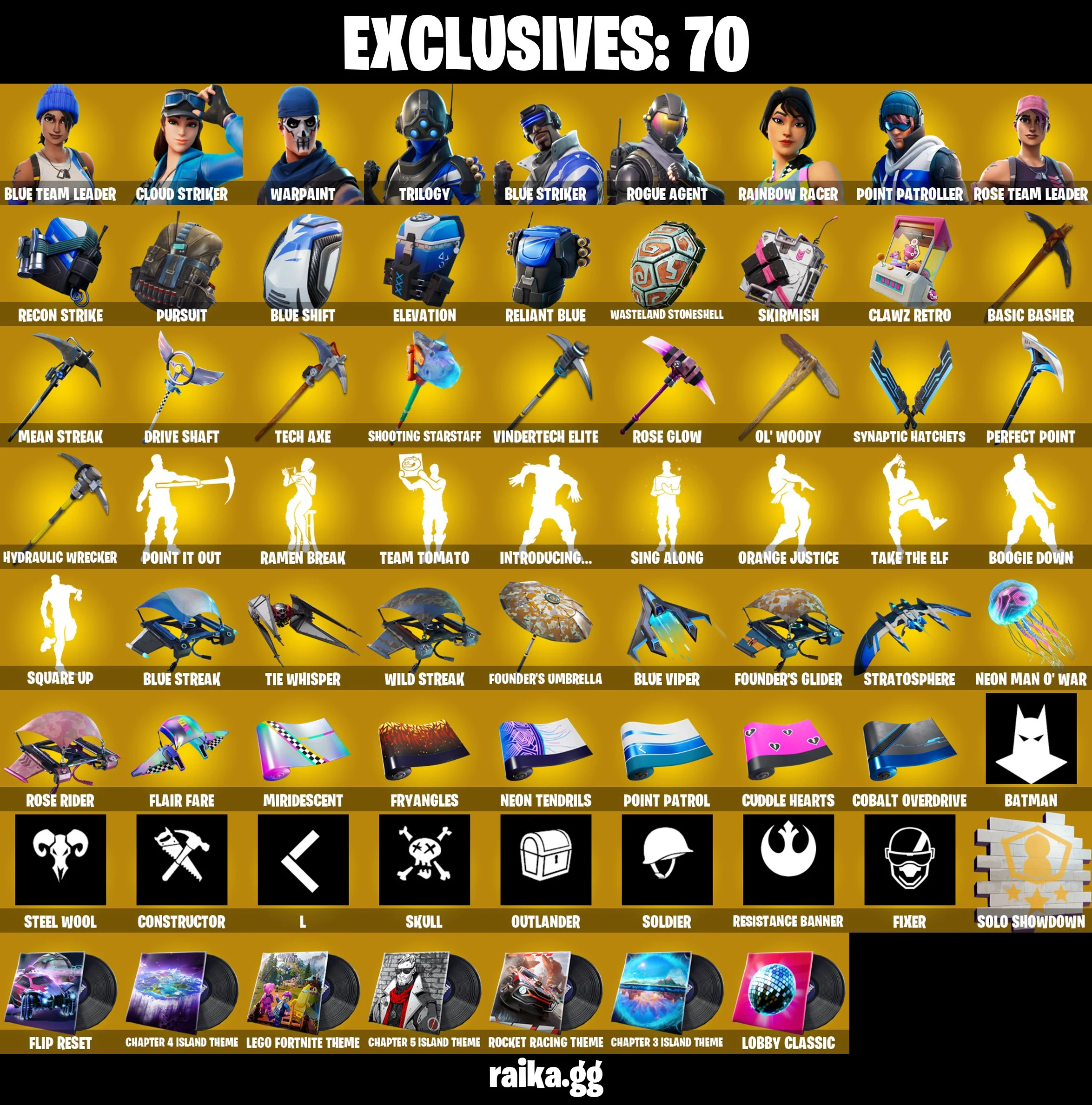 [PC/XBOX/PSN] 105 skins | OG STW | Blue Team Leader | Cloud Striker | Trilogy | Blue Striker | Rogue Agent | Rainbow Racer | Point Patroller | Recon Strike | 88