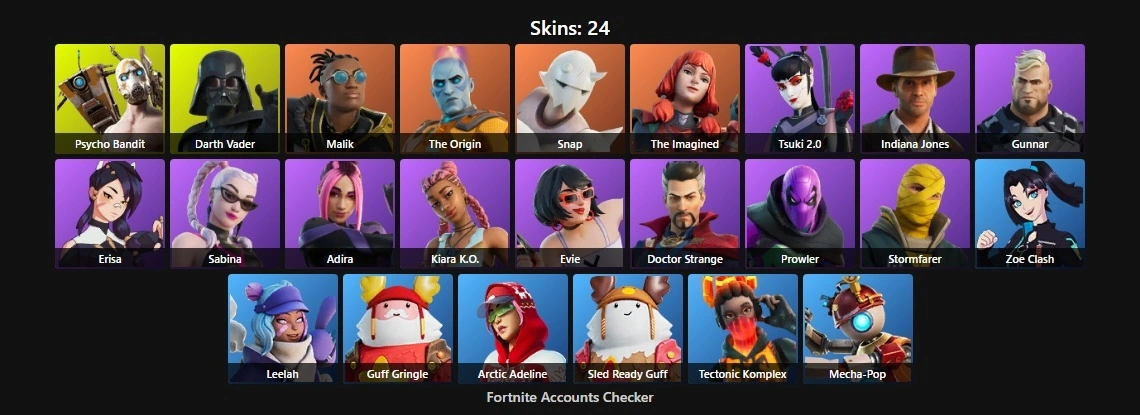 PC/XBOX/PSN 24 Skins⚡ | Darth Vader | Psycho Bandit | Malik | The Origin | Snap | The Imagined | Tsuki 2.0 | Indiana Jones | Gunnar | Erisa | Sabina | Adira