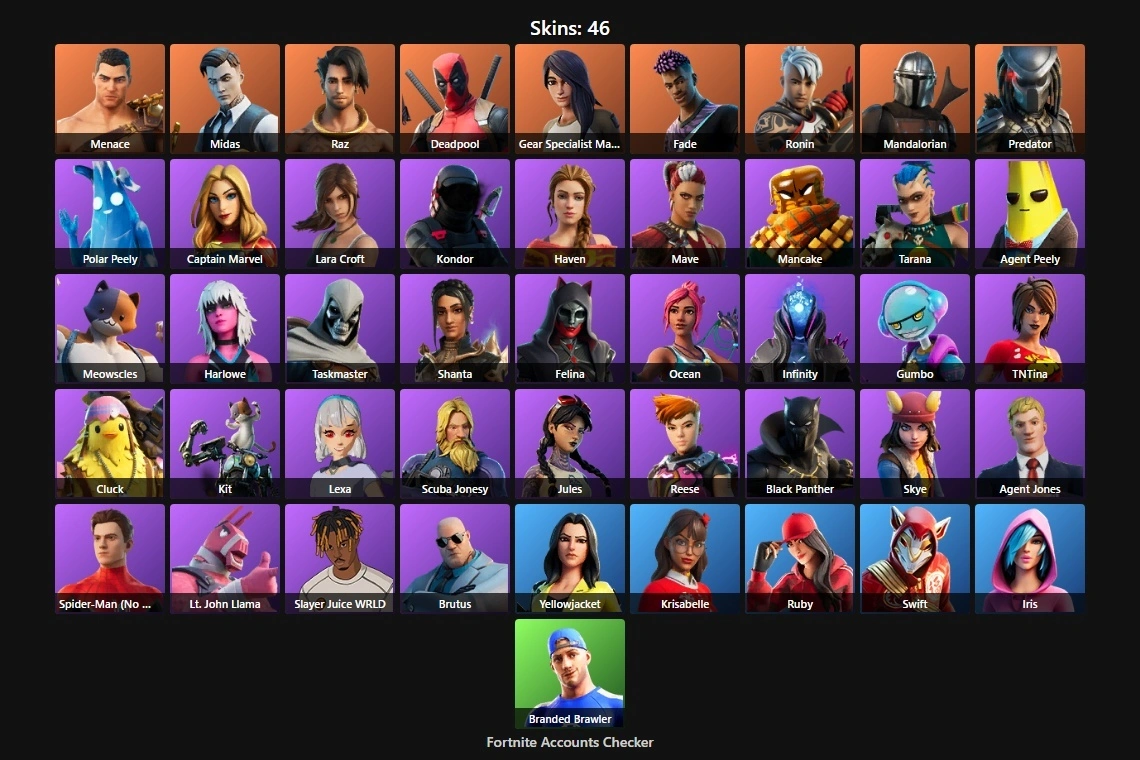 PC/XBOX/PSN 46 Skins⚡ | Midas | Deadpool | Lara Croft | Menace | Raz | Gear Specialist Maya | Fade | Ronin | Mandalorian | Predator | Polar Peely