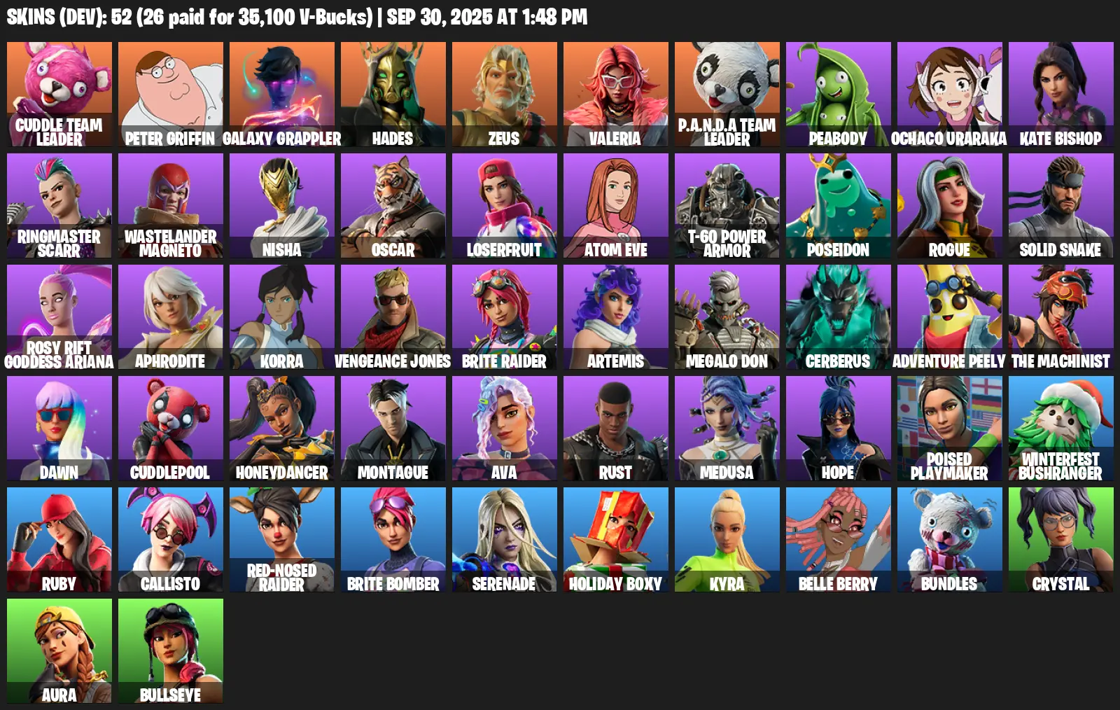 PC/XBOX/PSN 52 Skins⚡ | Cuddle Team Leader | Peter Griffin | Galaxy Grappler | Hades | Zeus | Valeria | P.A.N.D.A Team Leader | Peabody | Ochaco Uraraka