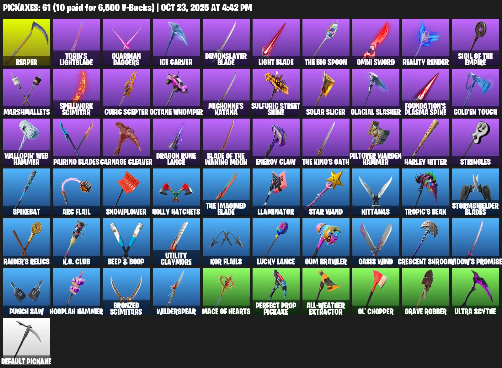 [PC/XBOX/PSN] 58 Skins | Arcane Vi | Darth Vader | Snap | Torin | The Foundation | The Cube Queen | The Origin | The Imagined | Malik | Ronin | Toona Fish | Evie | Stormfarer | Gunnar | Adira | Erisa | Spider-Man | Tsuki 2.0 | Polar Peely