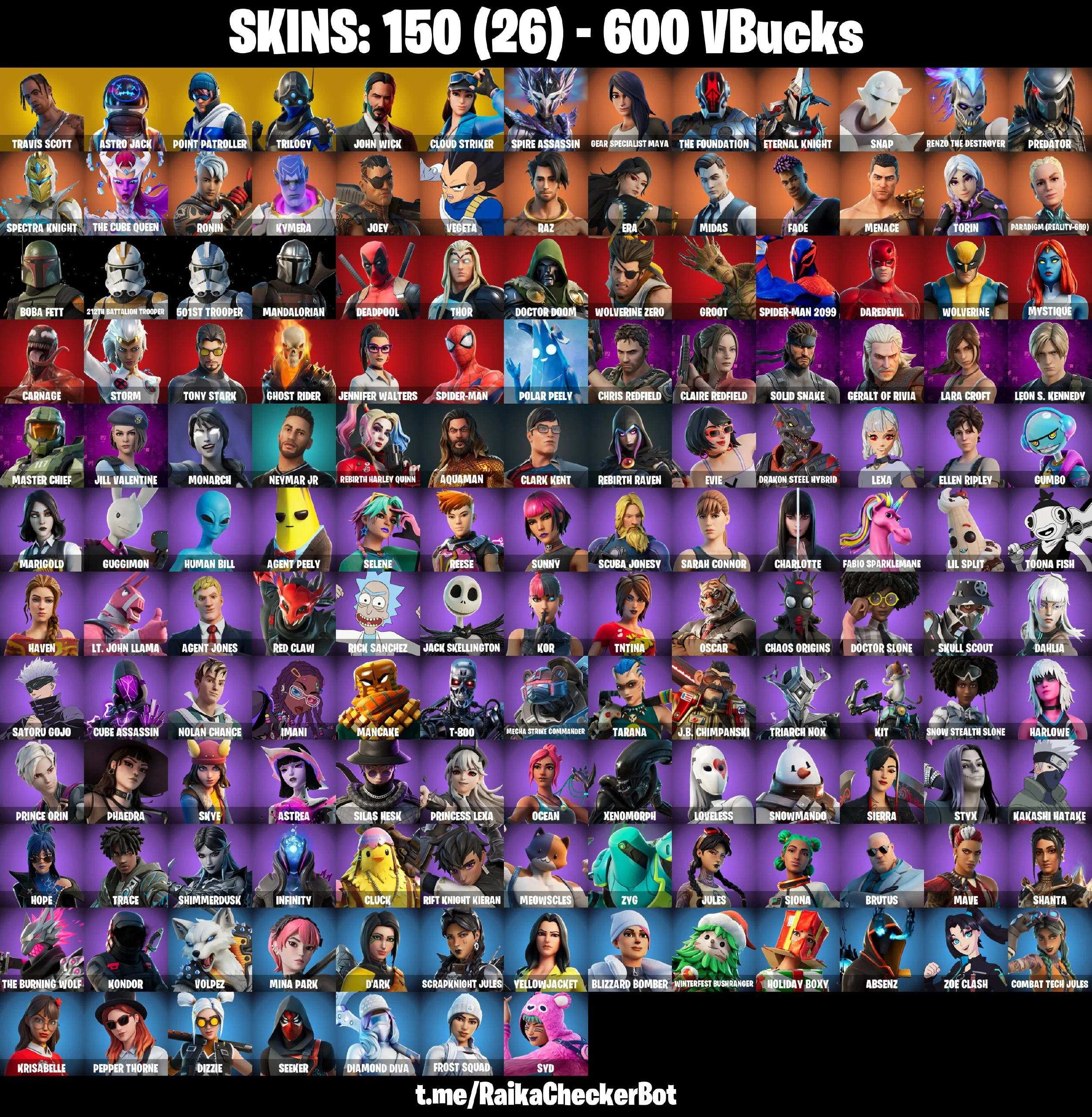 🎁✨ RARE ACCOUNT ✨🎁 150 SKINS 🌟 TRAVIS SCOTT 🌟 ASTRO JACK 🌟 MASTER CHIEF 🌟 POINT PATROLLER 🌟 TRILOGY 🌟 JOHN WICK 🌟 CLOUD STRIKER 🌟 SPIRE ASSASSIN 🌟 600 VB 🌟 PSN/XBOX/PC