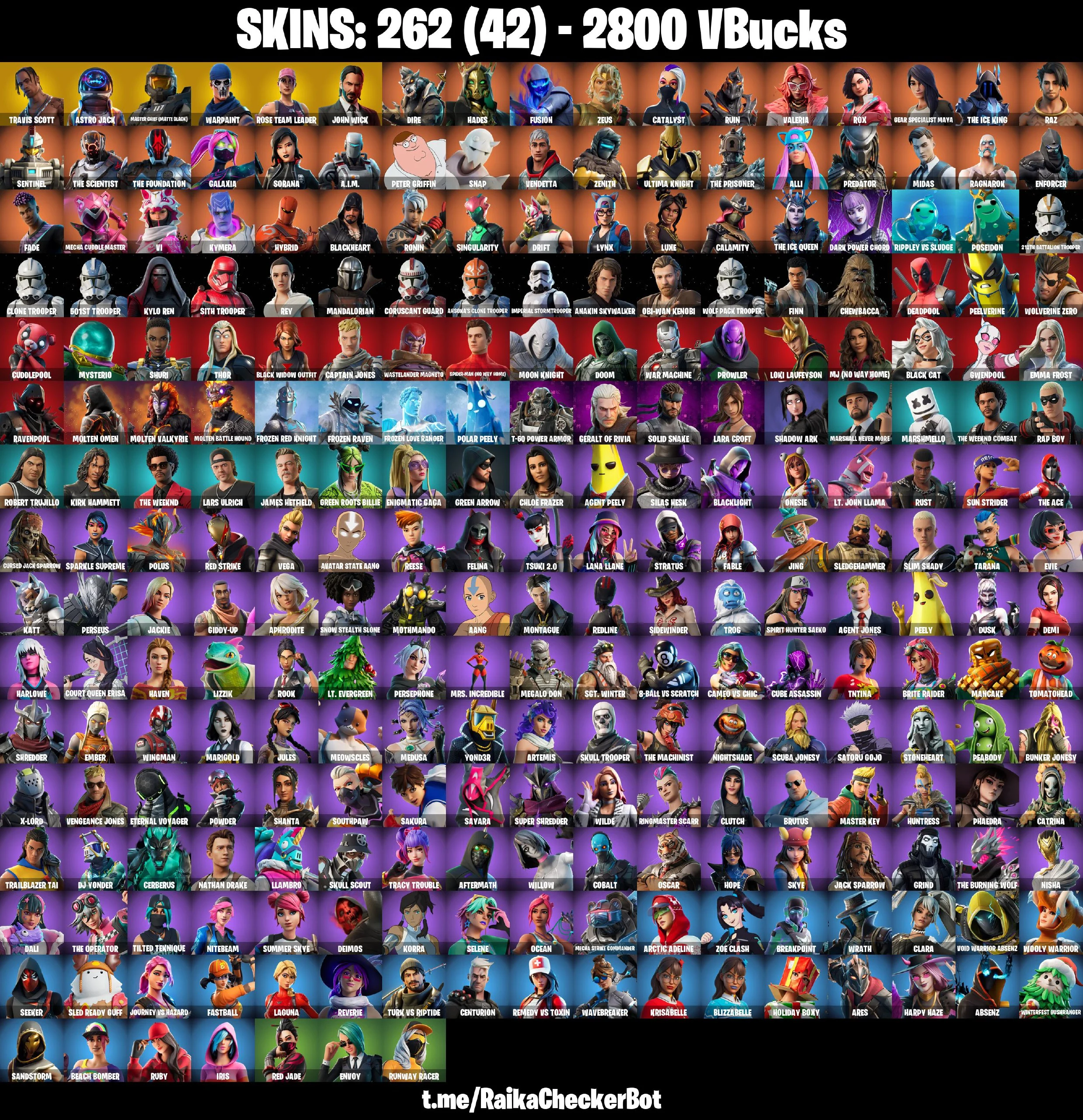 🎁✨ RARE ACCOUNT ✨🎁 262 SKINS 🌟 TRAVIS SCOTT 🌟 ASTRO JACK 🌟 MASTER CHIEF (MATTE BLACK) 🌟 JOHN WICK 🌟 DIRE 🌟 HADES 🌟 FUSION 🌟 ZEUS 🌟 CATALYST 🌟 RUIN 🌟 2800 VB 🌟 PSN/XBOX/PC
