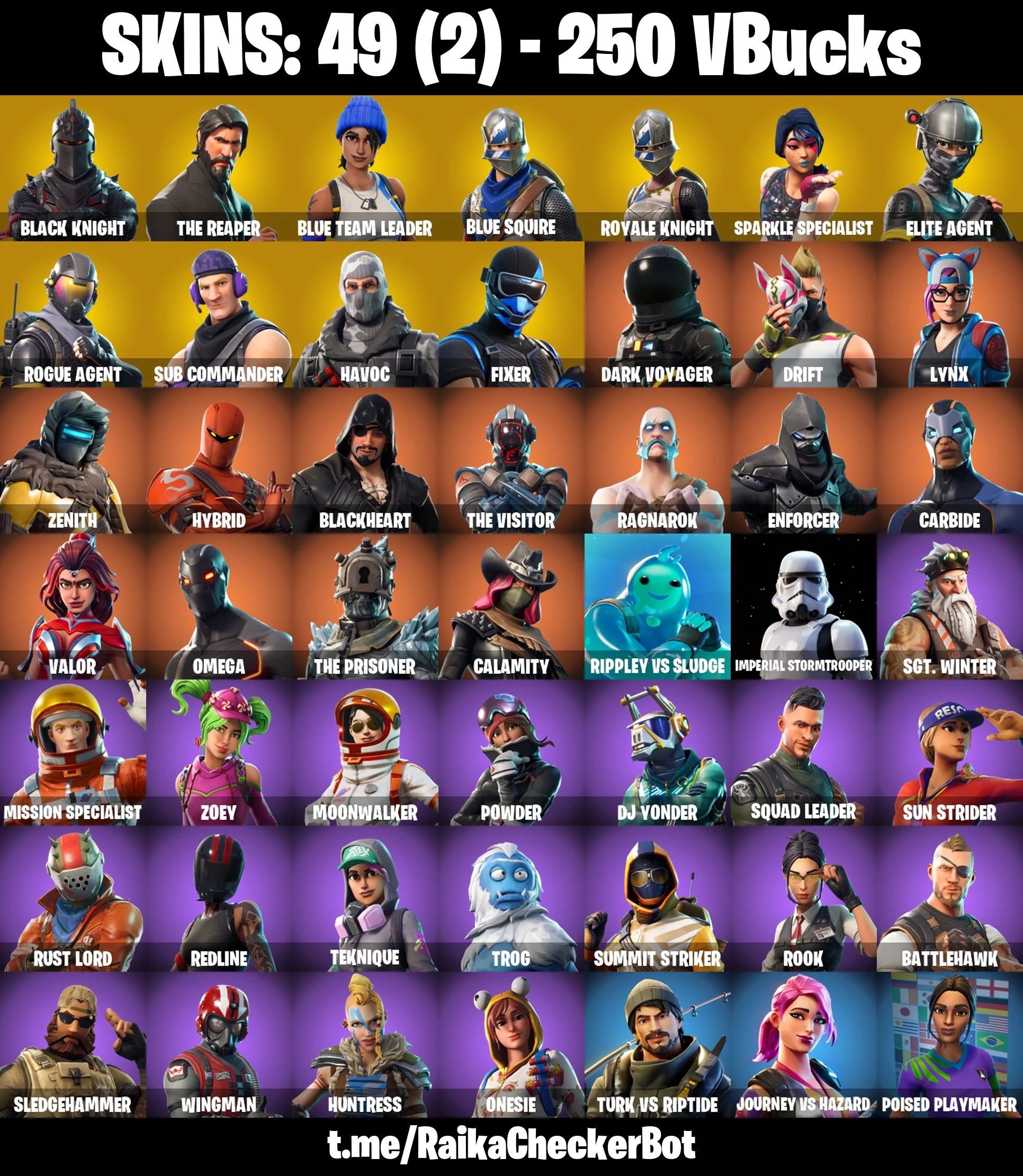 🎁✨ RARE ACCOUNT ✨🎁 49 SKINS 🌟 BLACK KNIGHT 🌟 FLOSS 🌟 TAKE THE L 🌟 THE REAPER 🌟 BLUE TEAM LEADER 🌟 BLUE SQUIRE 🌟 ROYALE KNIGHT 🌟 SPARKLE SPECIALIST 🌟 ELITE AGENT 🌟 ROGUE AGENT 🌟 250 VB 🌟 PSN/PC/XBOX