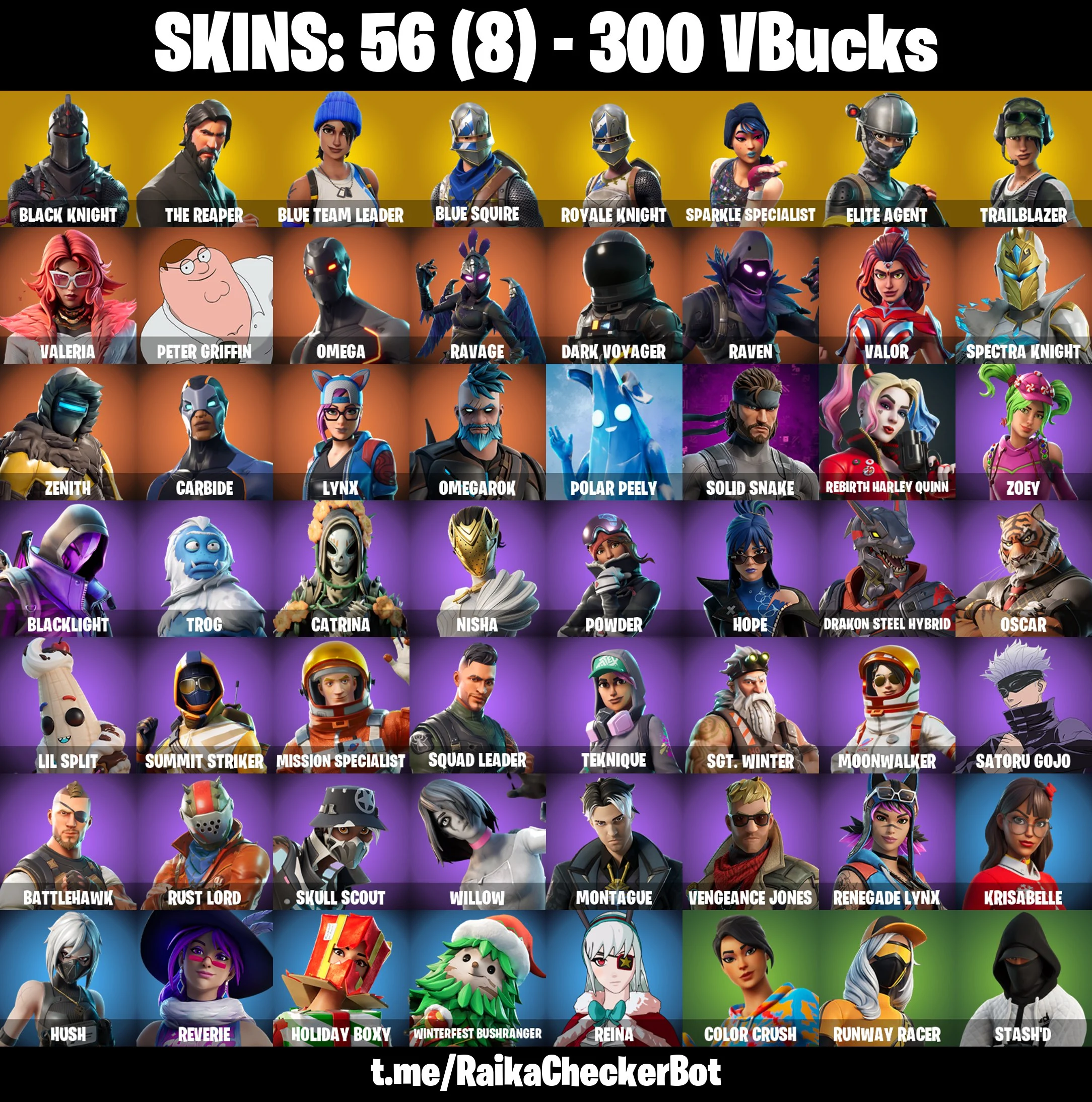 🎁✨ RARE ACCOUNT ✨🎁 56 SKINS 🌟 BLACK KNIGHT 🌟 TAKE THE L 🌟 FLOSS 🌟 THE REAPER 🌟 BLUE SQUIRE 🌟 ROYALE KNIGHT 🌟 SPARKLE SPECIALIST 🌟 ELITE AGENT 🌟 TRAILBLAZER 🌟 300 VB 🌟 PSN/PC/XBOX