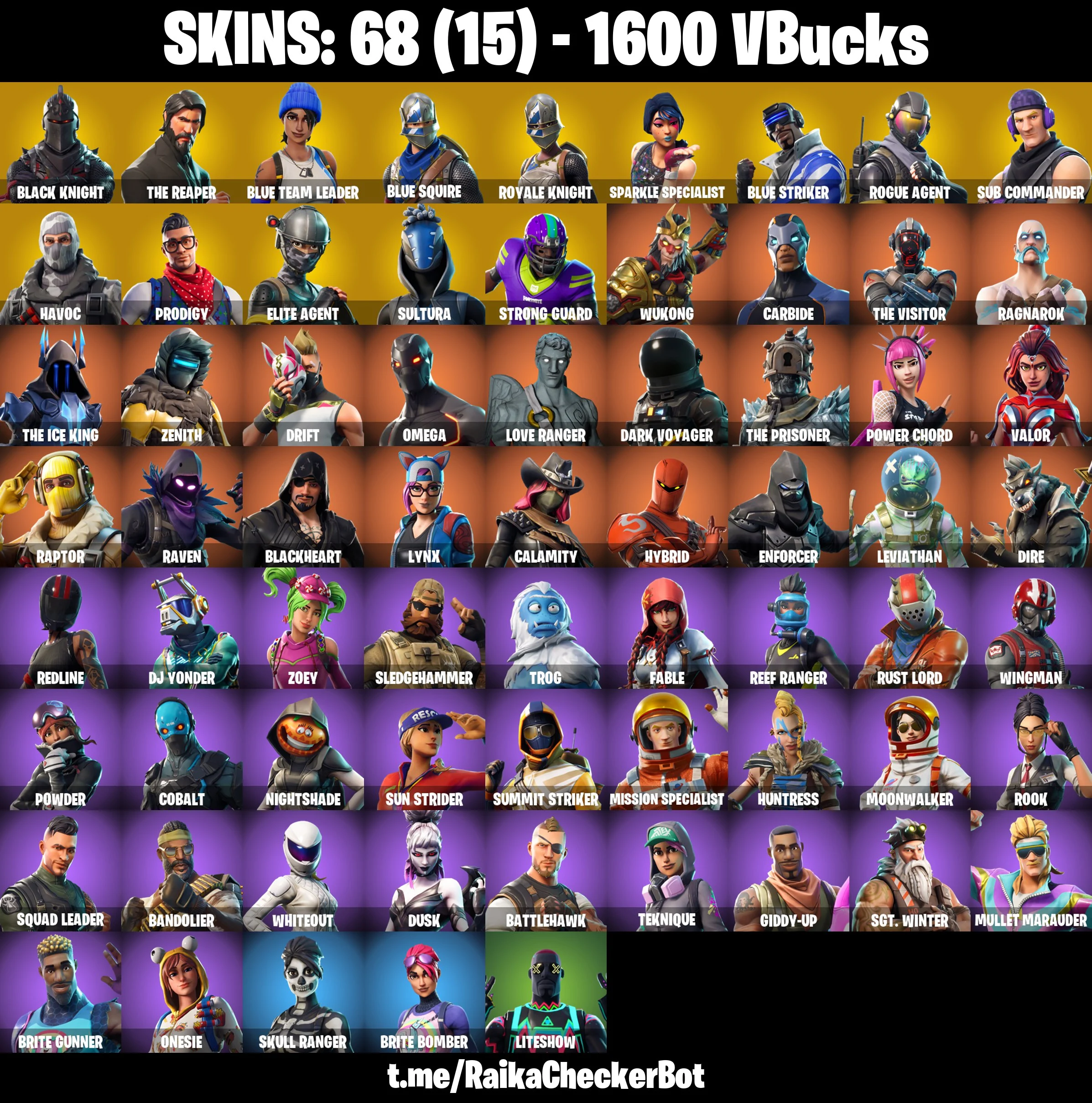 🎁✨ RARE ACCOUNT ✨🎁 68 SKINS 🌟 BLACK KNIGHT 🌟 FLOSS 🌟 TAKE THE L 🌟 THE REAPER 🌟 BLUE SQUIRE 🌟 ROYALE KNIGHT 🌟 SPARKLE SPECIALIST 🌟 BLUE STRIKER 🌟 ROGUE AGENT 🌟 1600 VB 🌟 PSN/PC/XBOX