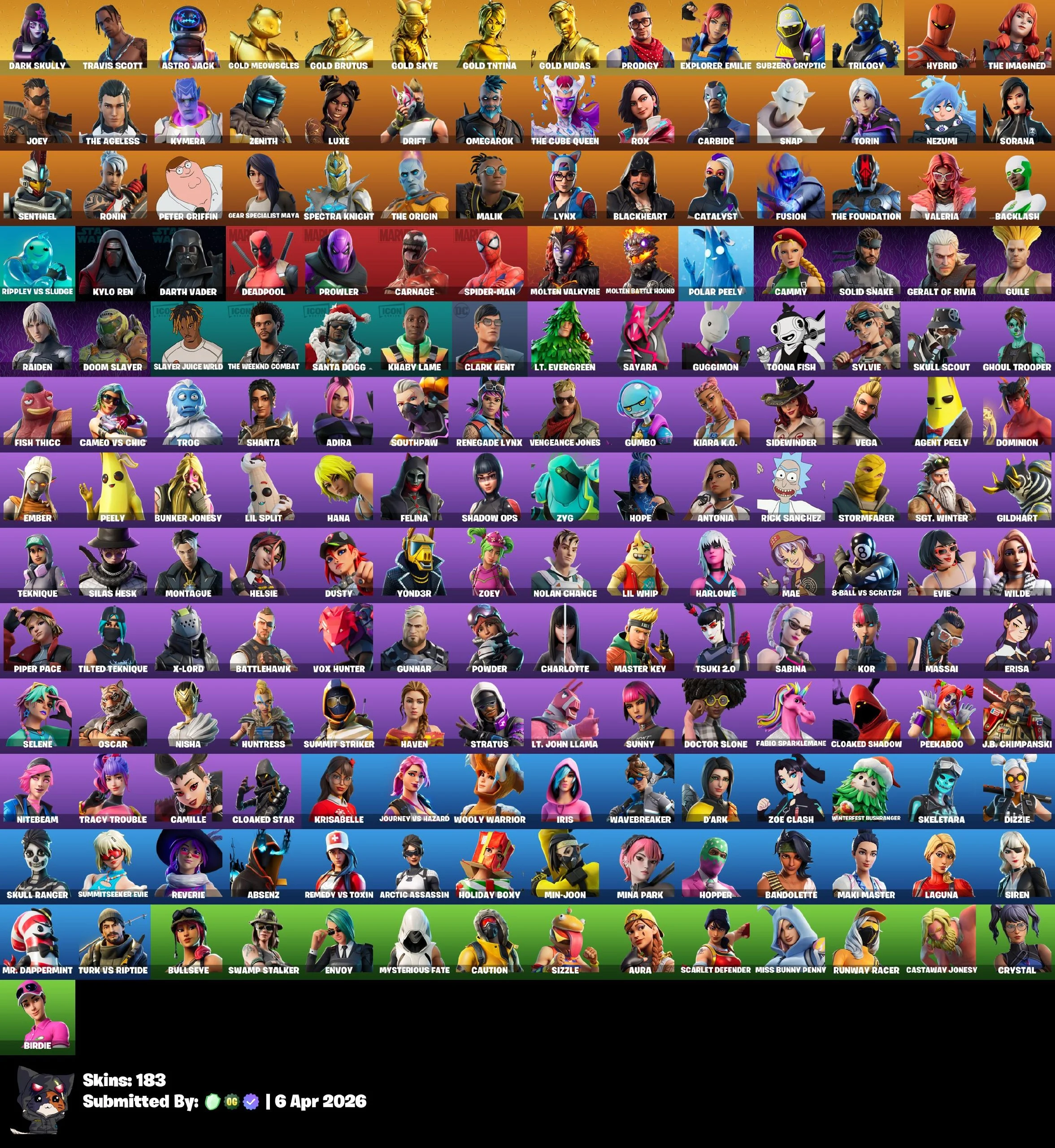 🔥 RARE ACCOUNT 💫 [PC/PSN/XBOX] 183 skins 🎁 Dark Skully ⭐️ Travis Scott 🎁 Astro Jack ⭐️ Gold Meowscles 🎁 Gold Brutus ⭐️ Gold Skye 🎁 Gold TNTina ⭐️ Gold Midas 🎁 Prodigy