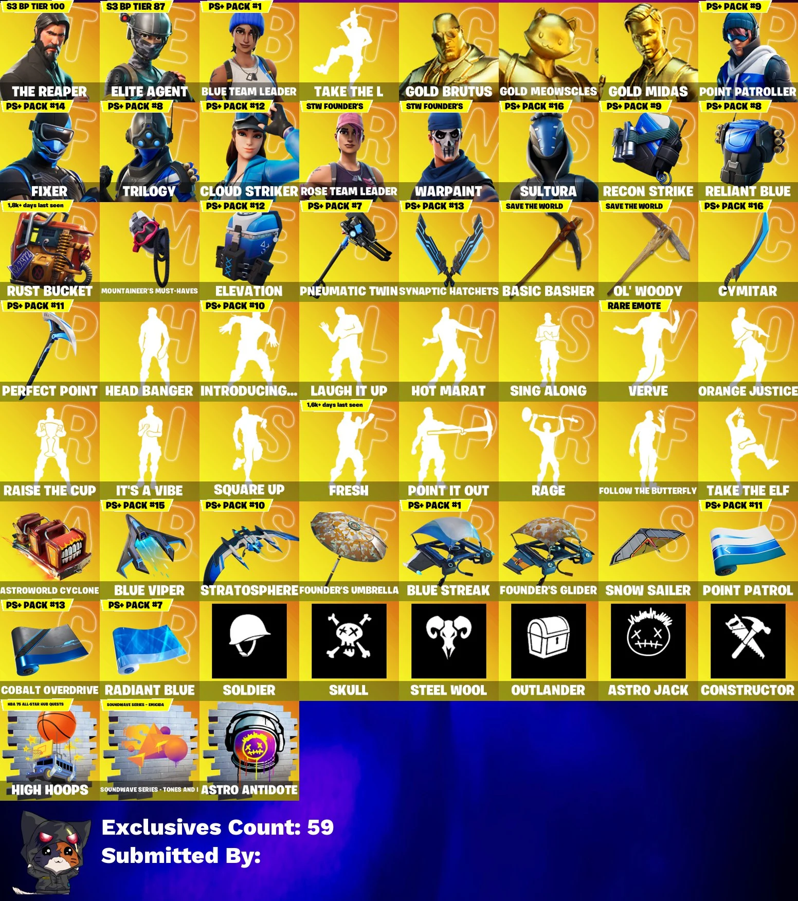 🎒🔥 STACKED OG ACCOUNT 🔥🎒 129 SKINS 💎 THE REAPER 💎 RENEGADE RAIDER 💎 ELITE AGENT 💎 TAKE THE L 💎 GOLD BRUTUS 💎 GOLD MEOWSCLES 💎 GOLD MIDAS 💎 POINT PATROLLER 💎 FIXER 💎 TRILOGY 💎 CLOUD STRIKER 💎 OG STW 💎 FULL ACCESS 💎