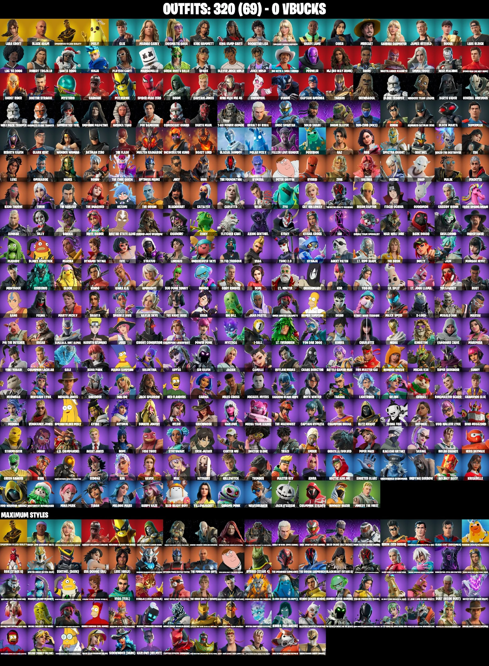 👑 SUPER STACKED 👑320 Skins 👑PC/PSN/XBOX👑 PAID EMOTES 👑 Lara Croft 👑 Marvel Skins 👑 Black Adam 👑 Buckets 👑 Neo's Bullet Time 👑 Teth's Throne 👑 Sing Along 👑 Peely 👑