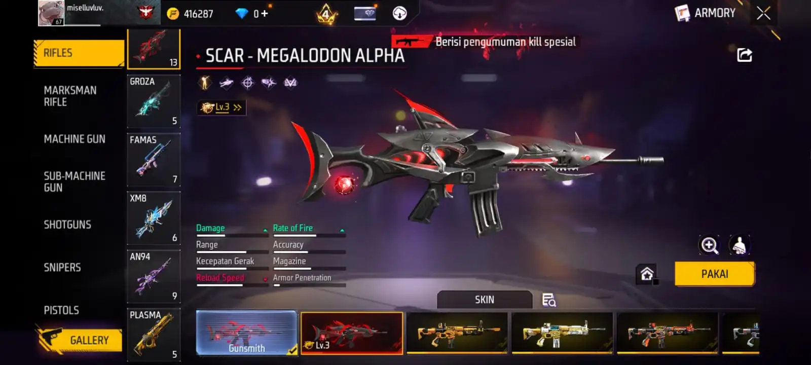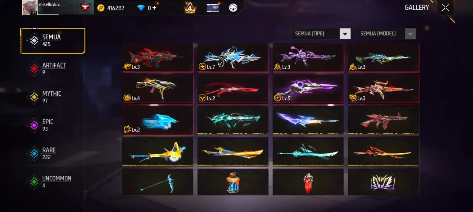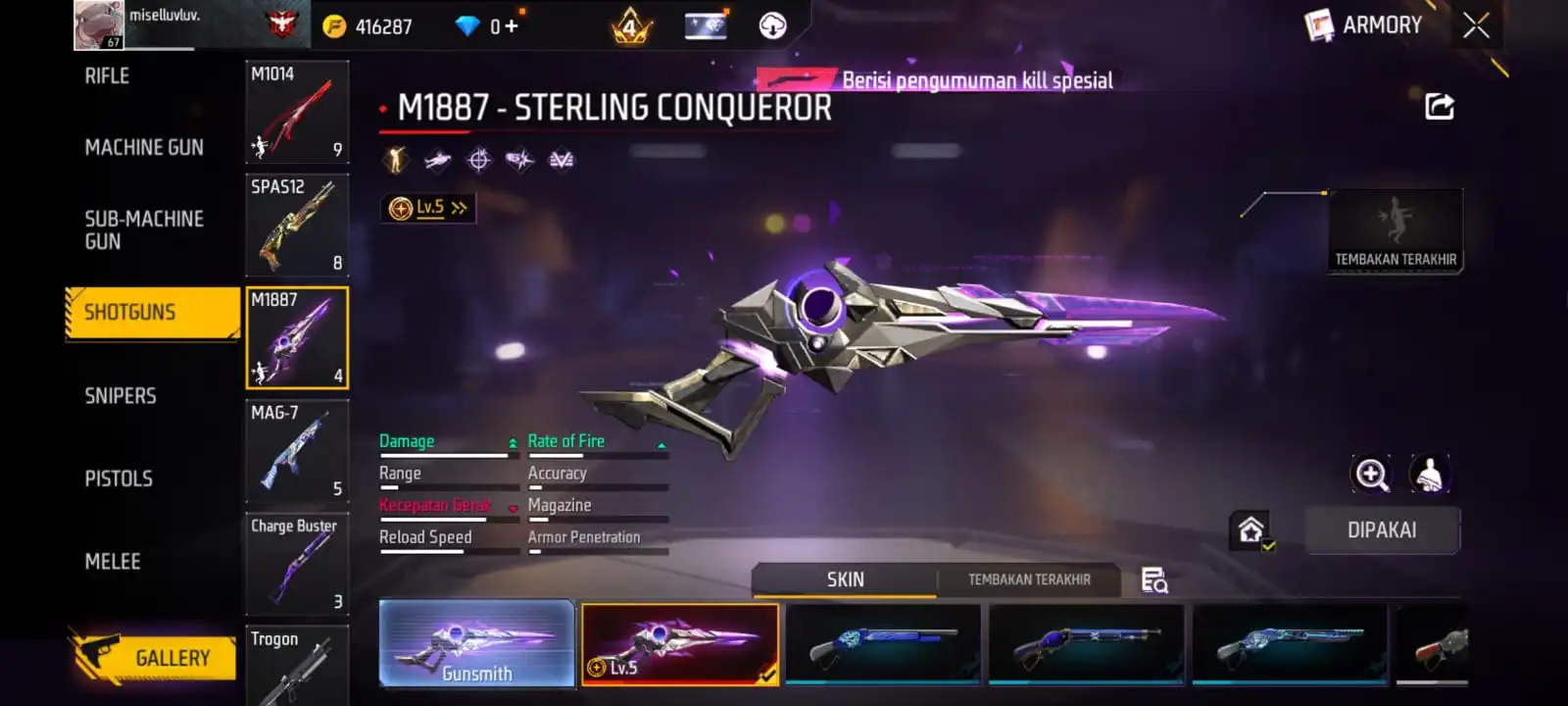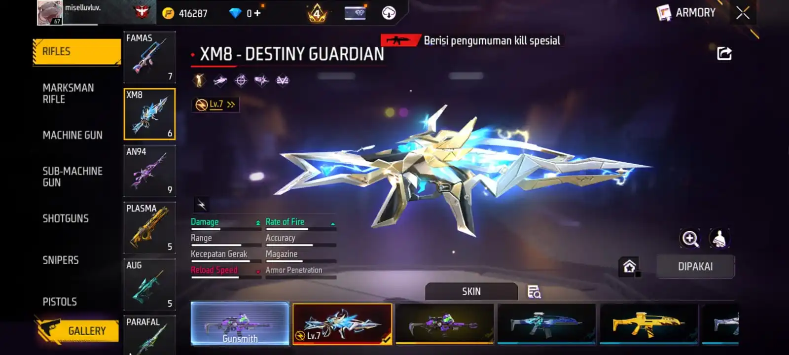 V15|LVL67|362COSTUME(33MYTHIC)|425WEAPON(9EVO+97MYTHIC)|DESTINYGUARDIAN-XM8LVLMAX|STERLINGCONQUEROR-M1887LVL5|MEGALODONALPHA-SCARLVL3