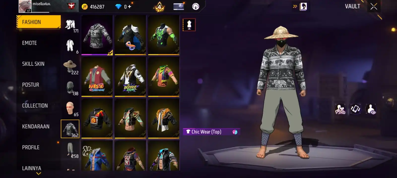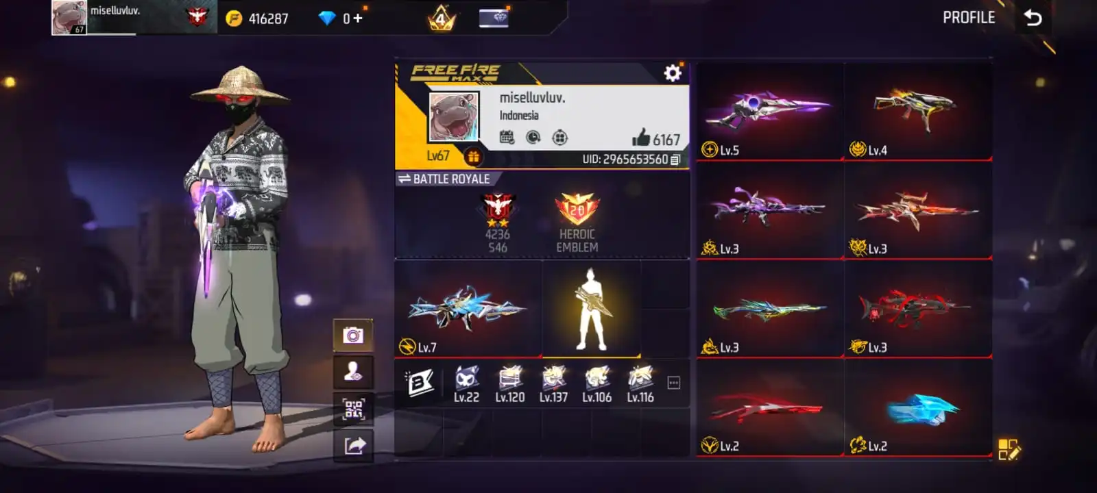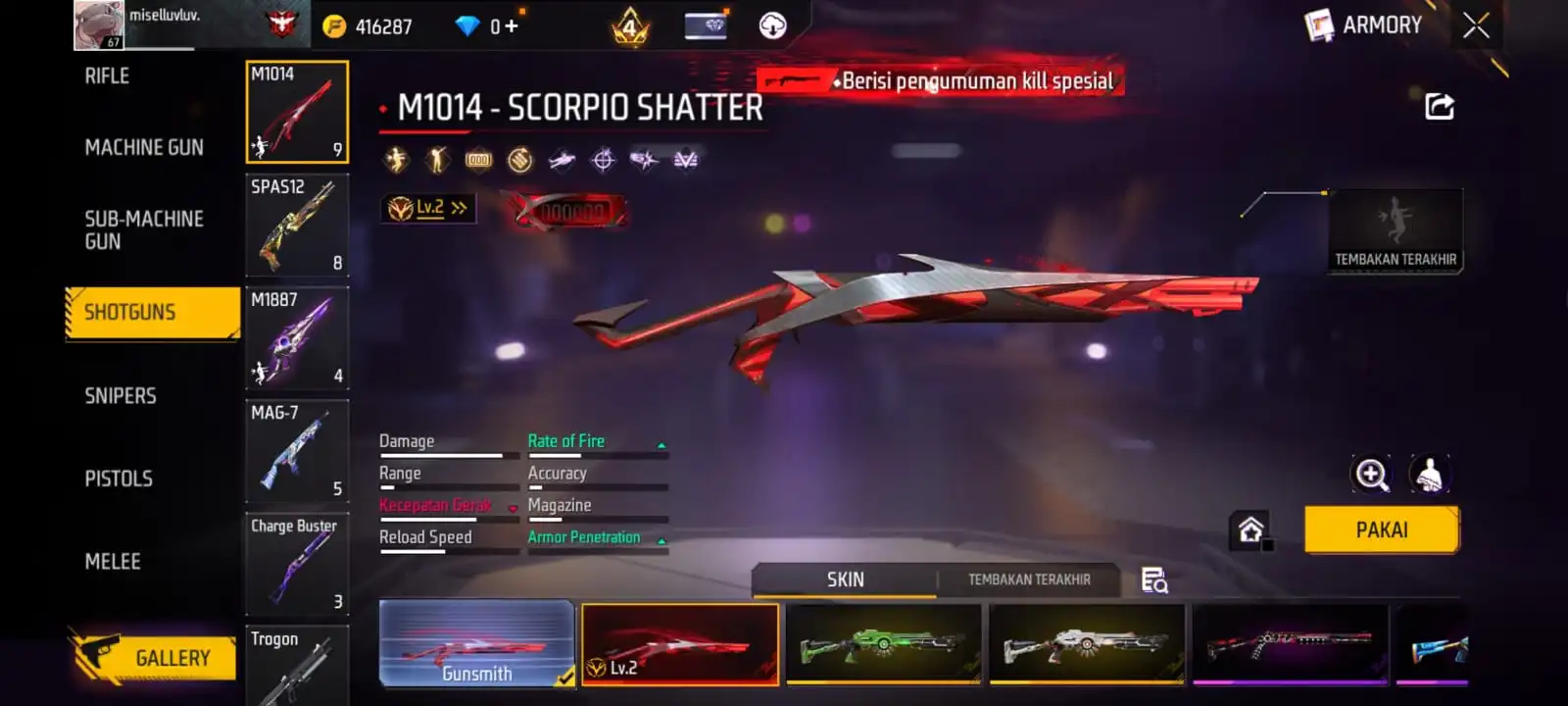 V15|LVL67|362COSTUME(33MYTHIC)|425WEAPON(9EVO+97MYTHIC)|DESTINYGUARDIAN-XM8LVLMAX|STERLINGCONQUEROR-M1887LVL5|MEGALODONALPHA-SCARLVL3