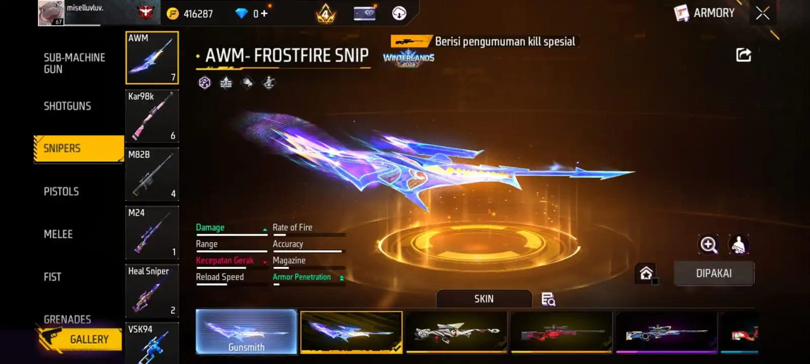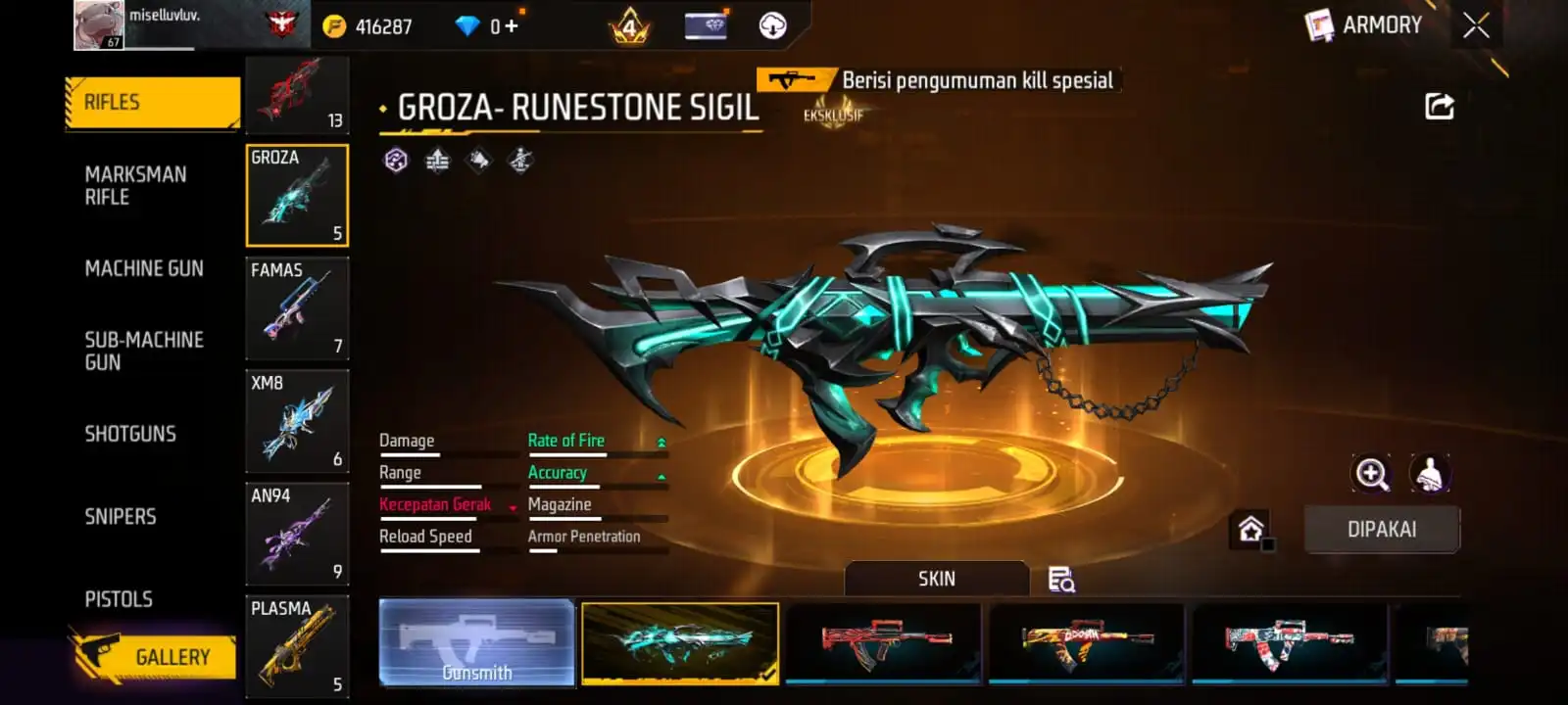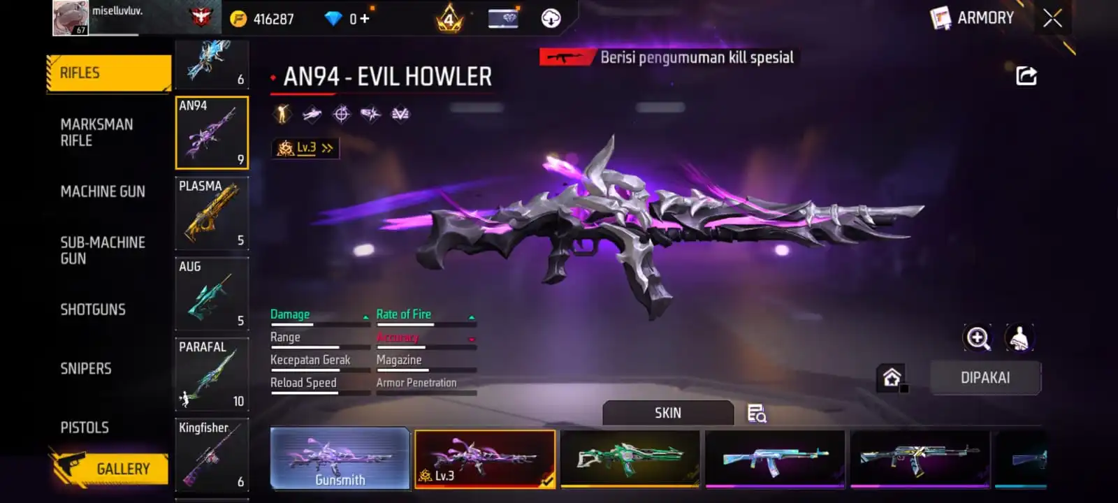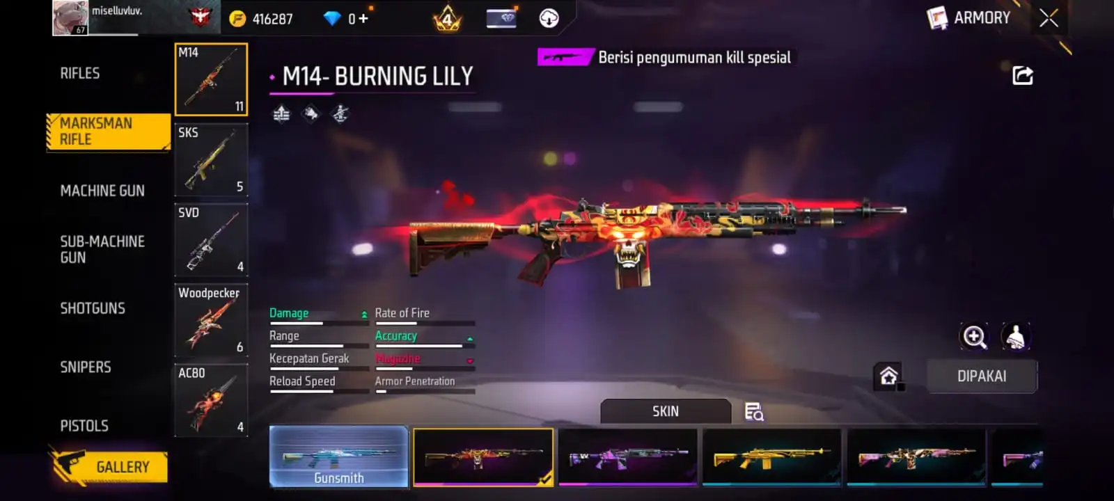 V15|LVL67|362COSTUME(33MYTHIC)|425WEAPON(9EVO+97MYTHIC)|DESTINYGUARDIAN-XM8LVLMAX|STERLINGCONQUEROR-M1887LVL5|MEGALODONALPHA-SCARLVL3
