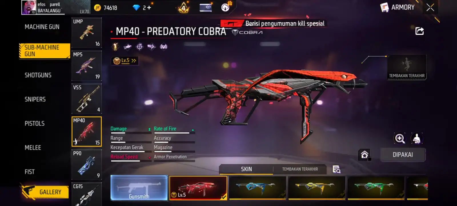 V16|LVL70|599COSTUME(47MYTHIC)|525WEAPON(3EVO+93MYTHIC)|MEGALODONALPHA-SCARLVL6|PREDATORYCOBRA-MP40LVL5|GREENFLAMEDRACO-M1014LVL5