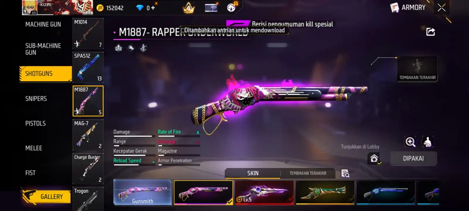 V21|LVL63|375COSTUME(28MYTHIC)|363WEAPON(2EVO+60MYTHIC)|STERLINGCONQUEROR-M1887LVL5|REAPERUNDERWORLD-M1877|BOOYAHDAY-UMPLVL4