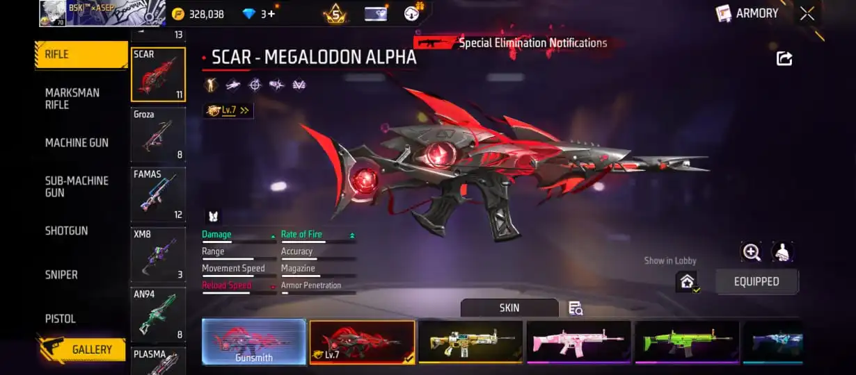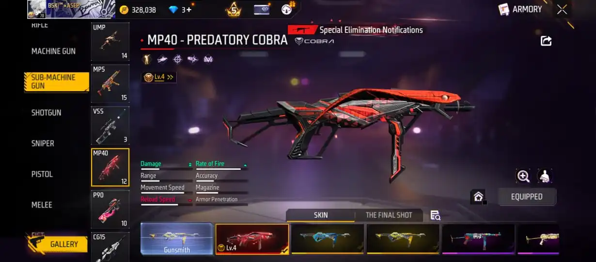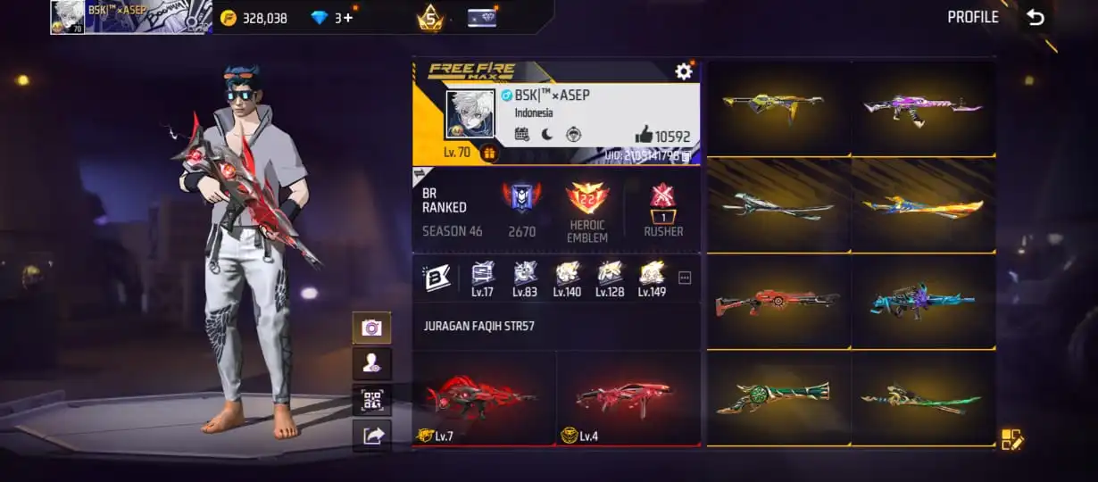 V22|LVL70|490COSTUME(2LEGENDARYOUTFIT+50MYTHIC)|510WEAPON(3EVO+97MYTHIC)|MEGALODONALPHA-SCARLVLMAX|PREDATORYCOBRA-MP40LVL4|BOOYAHDAY-UMPLVL4
