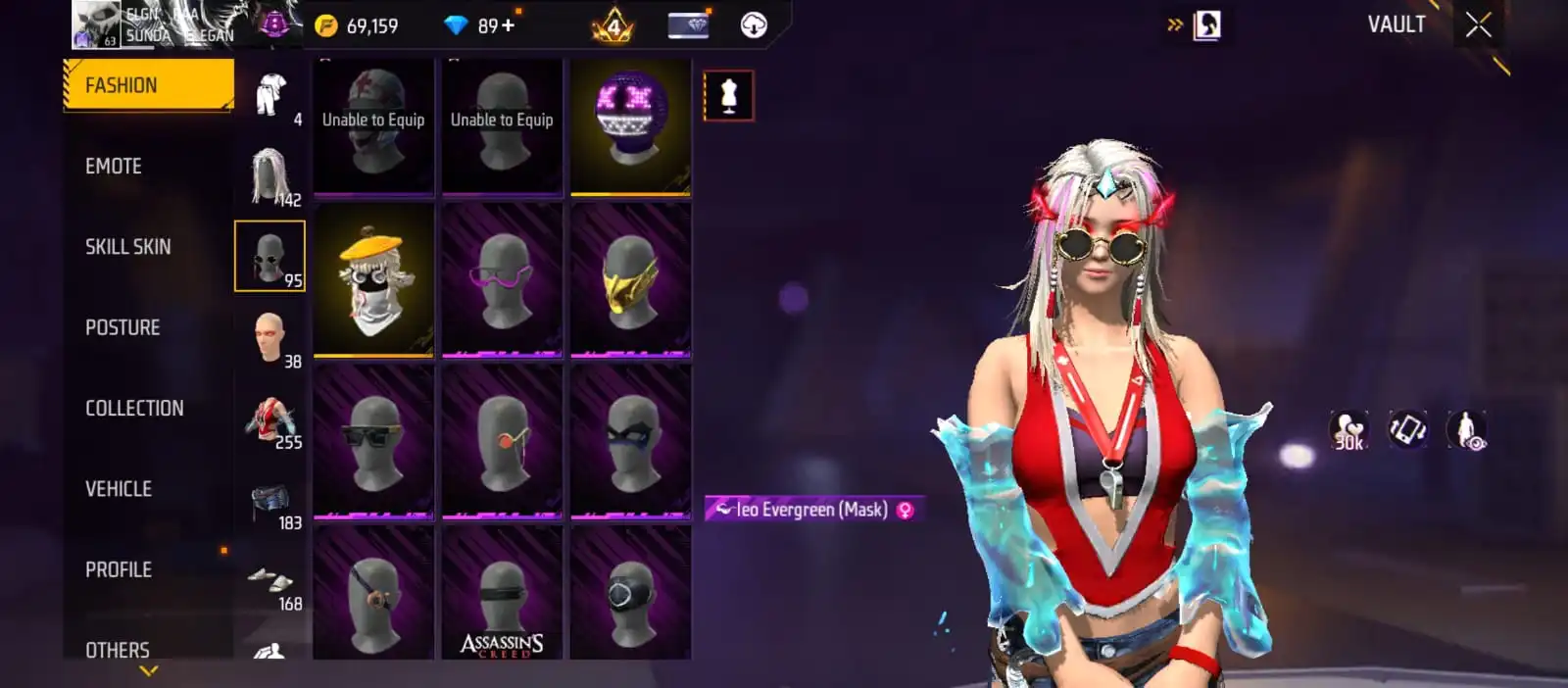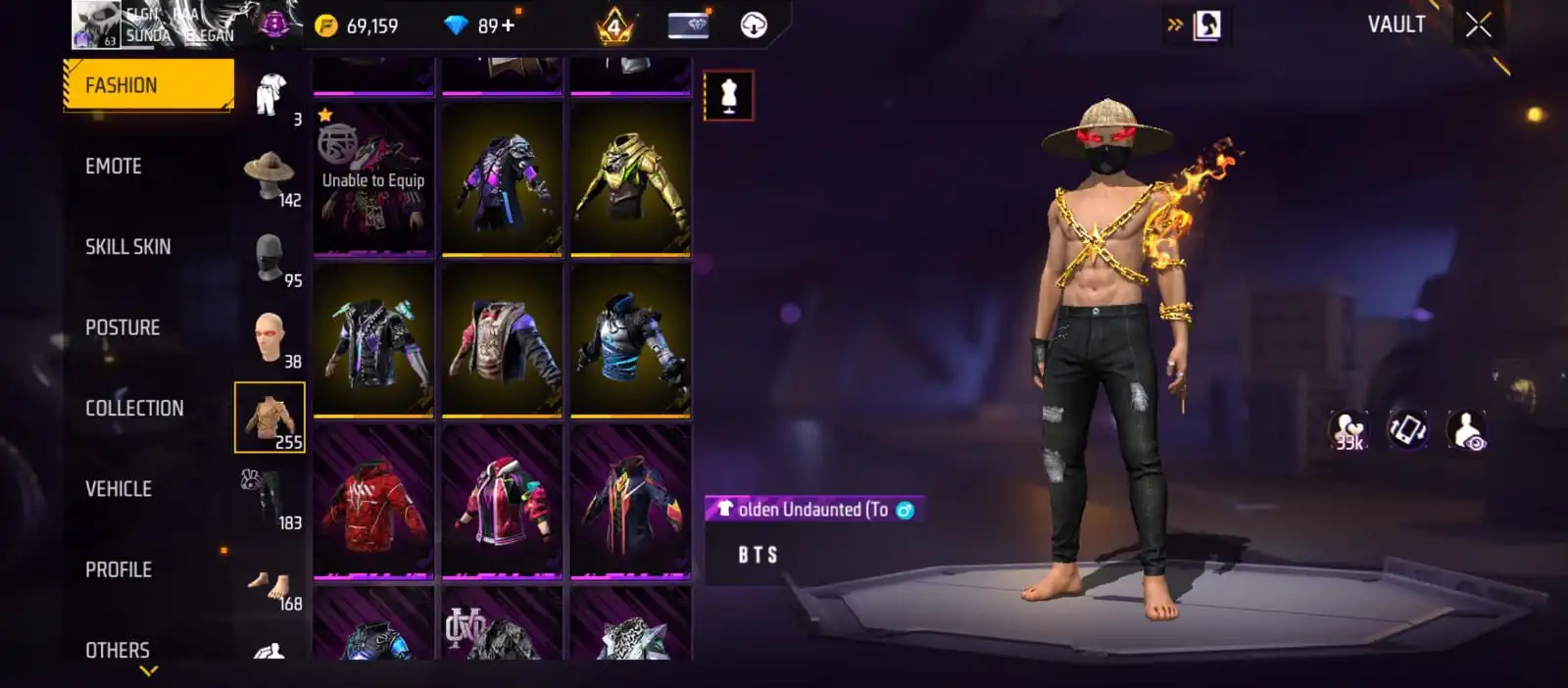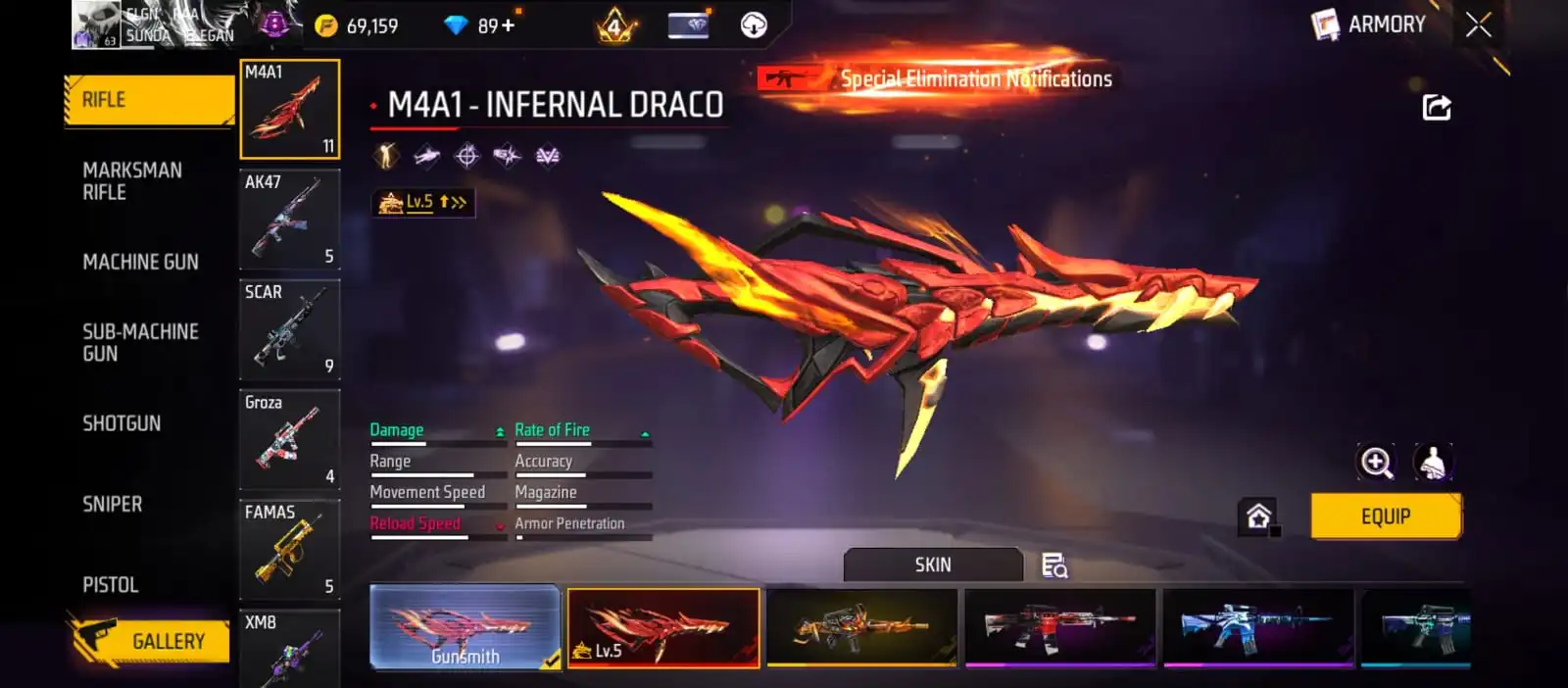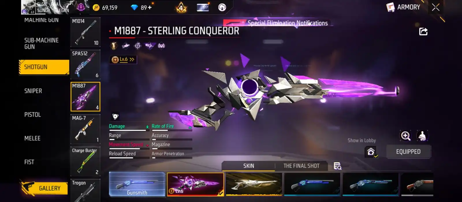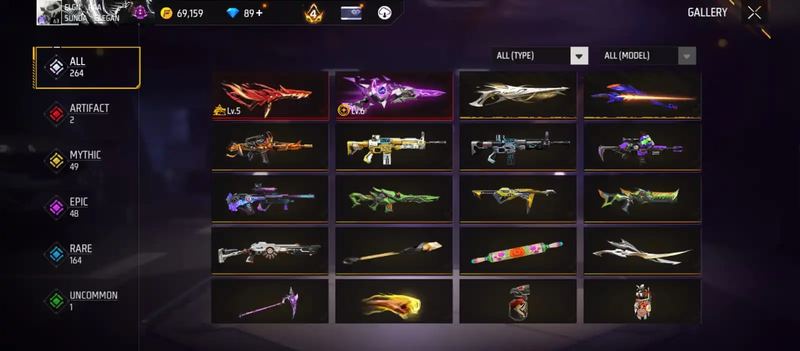 V25|LVL63|255COSTUME(11MYTHIC)|264WEAPON(2EVO+49MYTHIC)|STERLINGCONQUEROR-M1887LVL6|INFERNALDRACO-M4A1LVL5|SANDSTORMSHIMMER-M1887