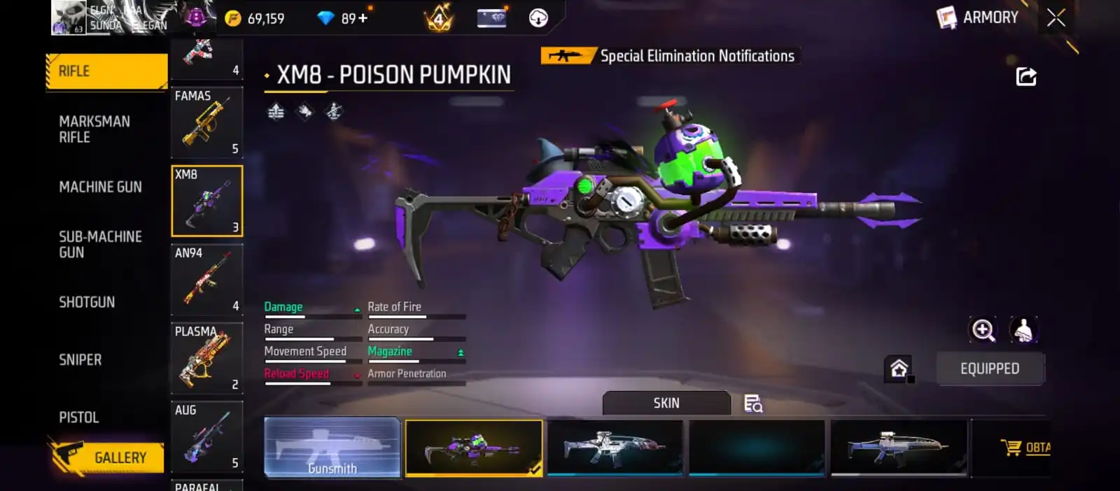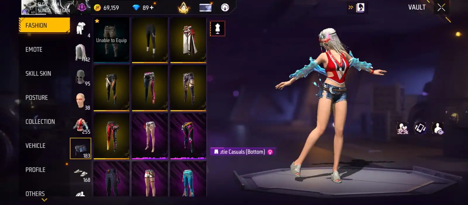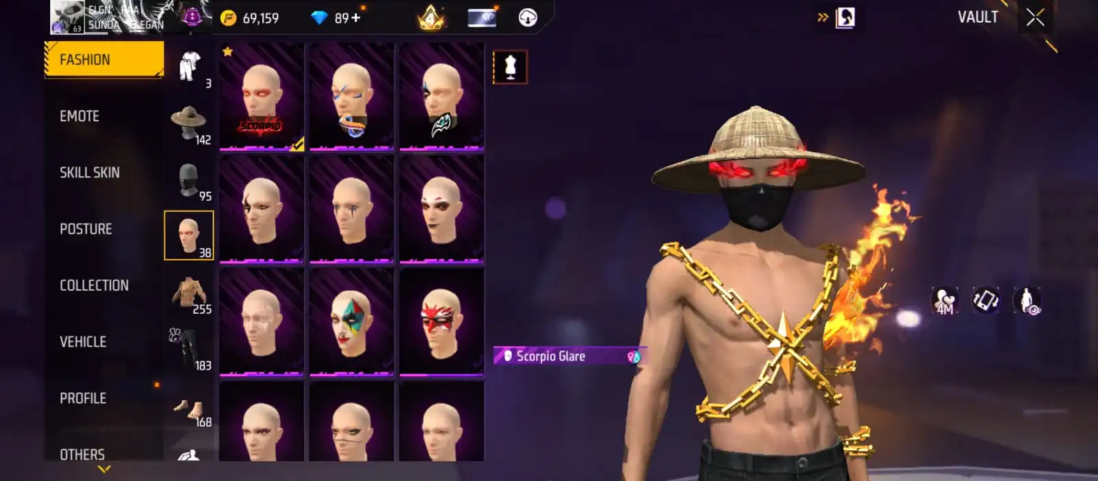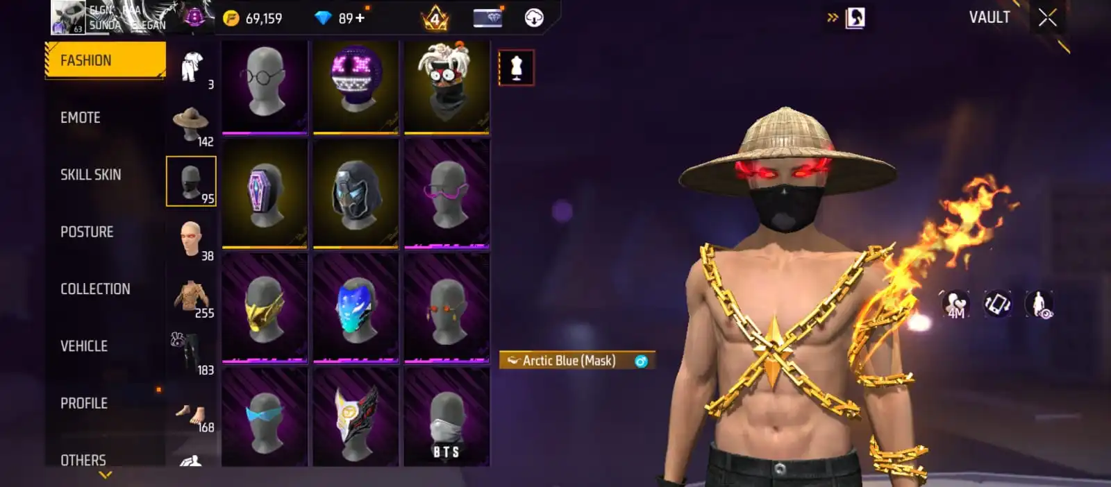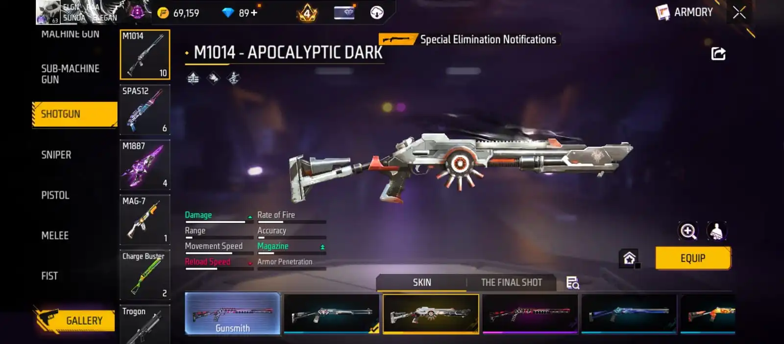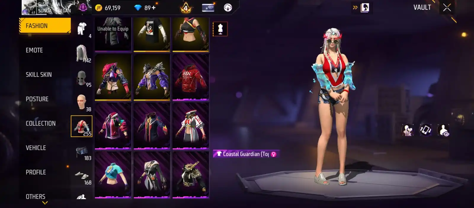 V25|LVL63|255COSTUME(11MYTHIC)|264WEAPON(2EVO+49MYTHIC)|STERLINGCONQUEROR-M1887LVL6|INFERNALDRACO-M4A1LVL5|SANDSTORMSHIMMER-M1887