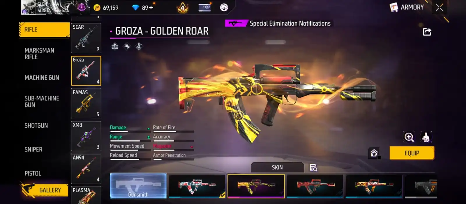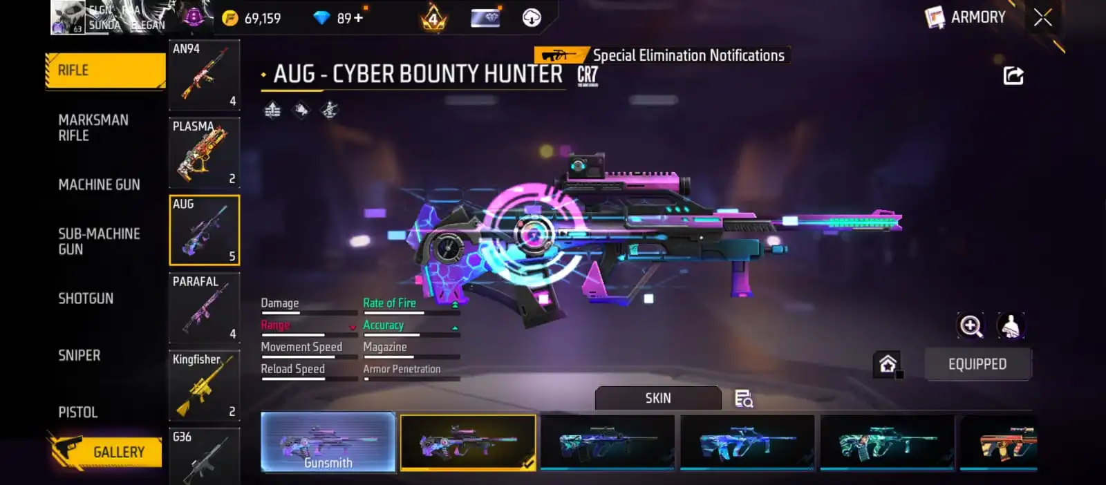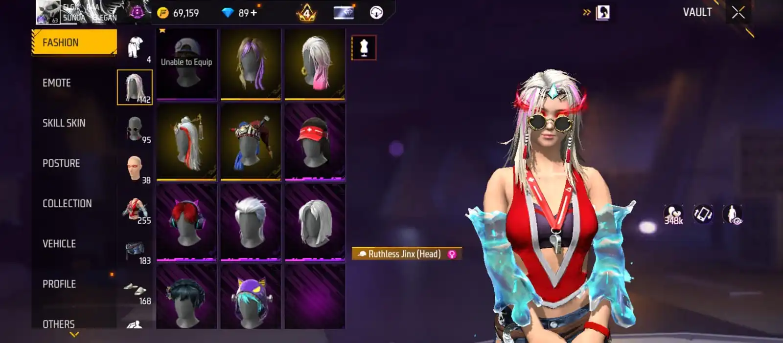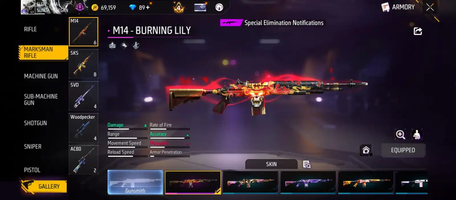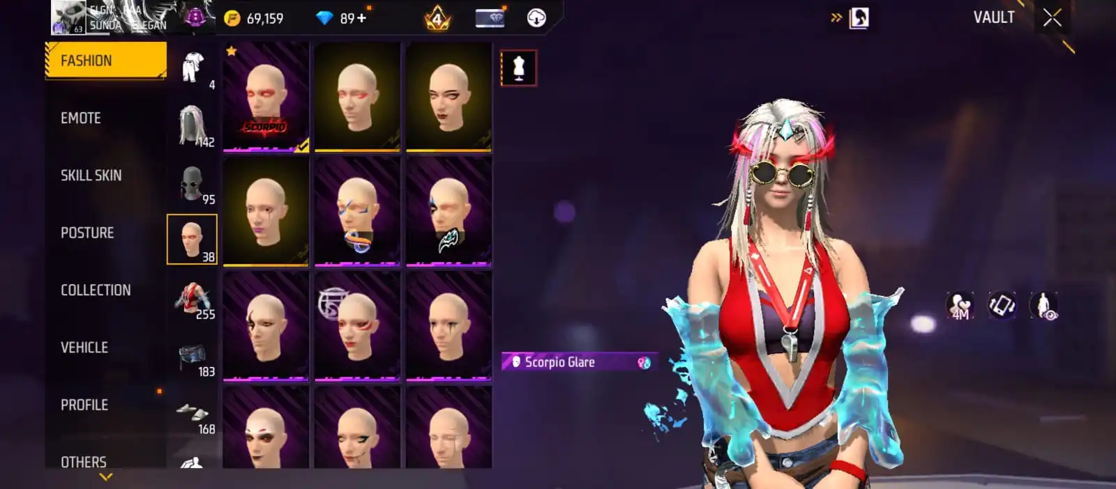 V25|LVL63|255COSTUME(11MYTHIC)|264WEAPON(2EVO+49MYTHIC)|STERLINGCONQUEROR-M1887LVL6|INFERNALDRACO-M4A1LVL5|SANDSTORMSHIMMER-M1887