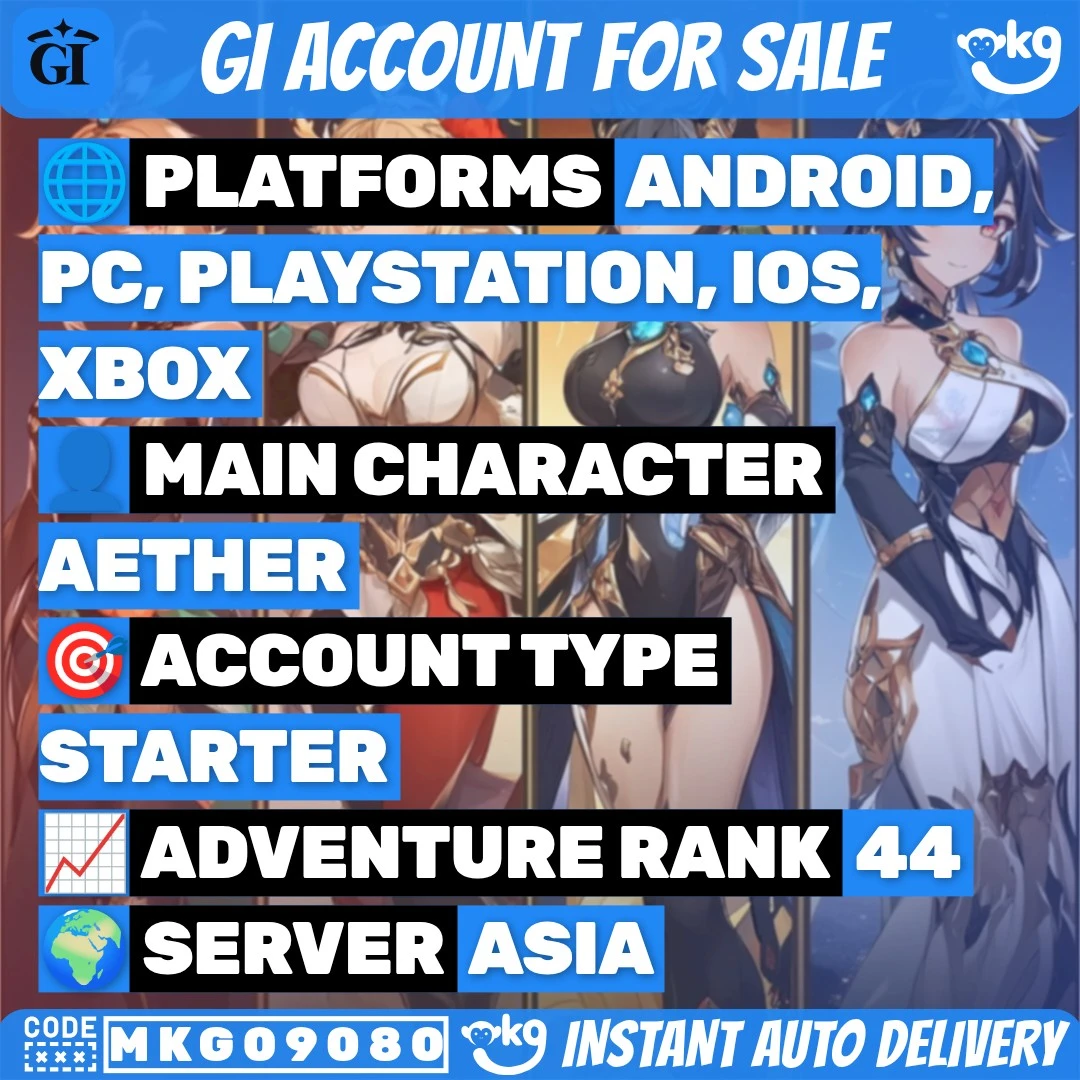 ✨👑 ASIA AR44 👑 ⭐⭐⭐⭐⭐x6 🌠 22 Chars 📦 Yoimiya🔥 Jean🌬️ Mona💧(Skyward Atlas📘) Qiqi❄️ !MKG09080