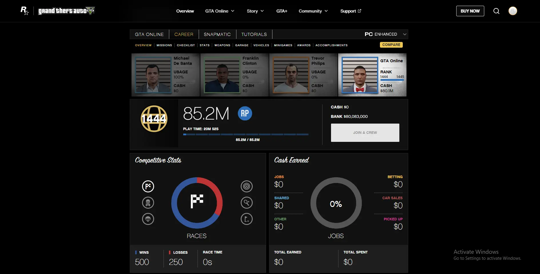 Steam Enhanced🔷 2.1B Assets 🔷300 Modded Cars🔷2.02B Casino Chips + 80M Cash 🔷20 Modded Outfits 🔷 Level 1444 🔷 Max Stats + All Unlocks