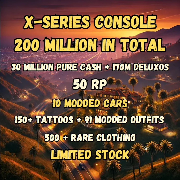 Xbox Series Enhanced Modded Outfits Account | Male Character | Max Stats & 150+ Rare Tattoos | 91 Modded Outfits + 200M (30M Pure Cash + 170M Deluxos) | RP 50 | 10 Modded Cars | #GTAXSCC187
