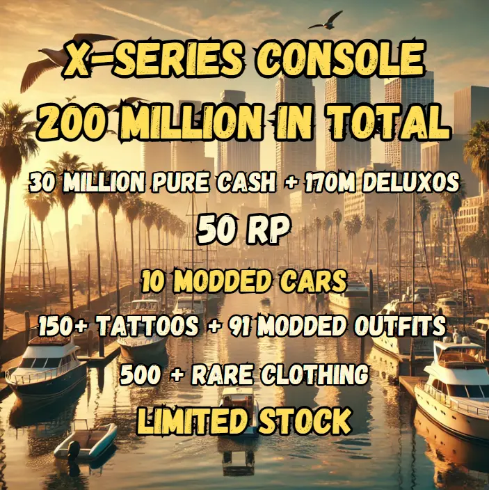 Xbox Series Enhanced Modded Outfits Account | Male Character | Max Stats & 150+ Rare Tattoos | 91 Modded Outfits + 200M (30M Pure Cash + 170M Deluxos) | RP 50 | 10 Modded Cars | #GTAXSCC188