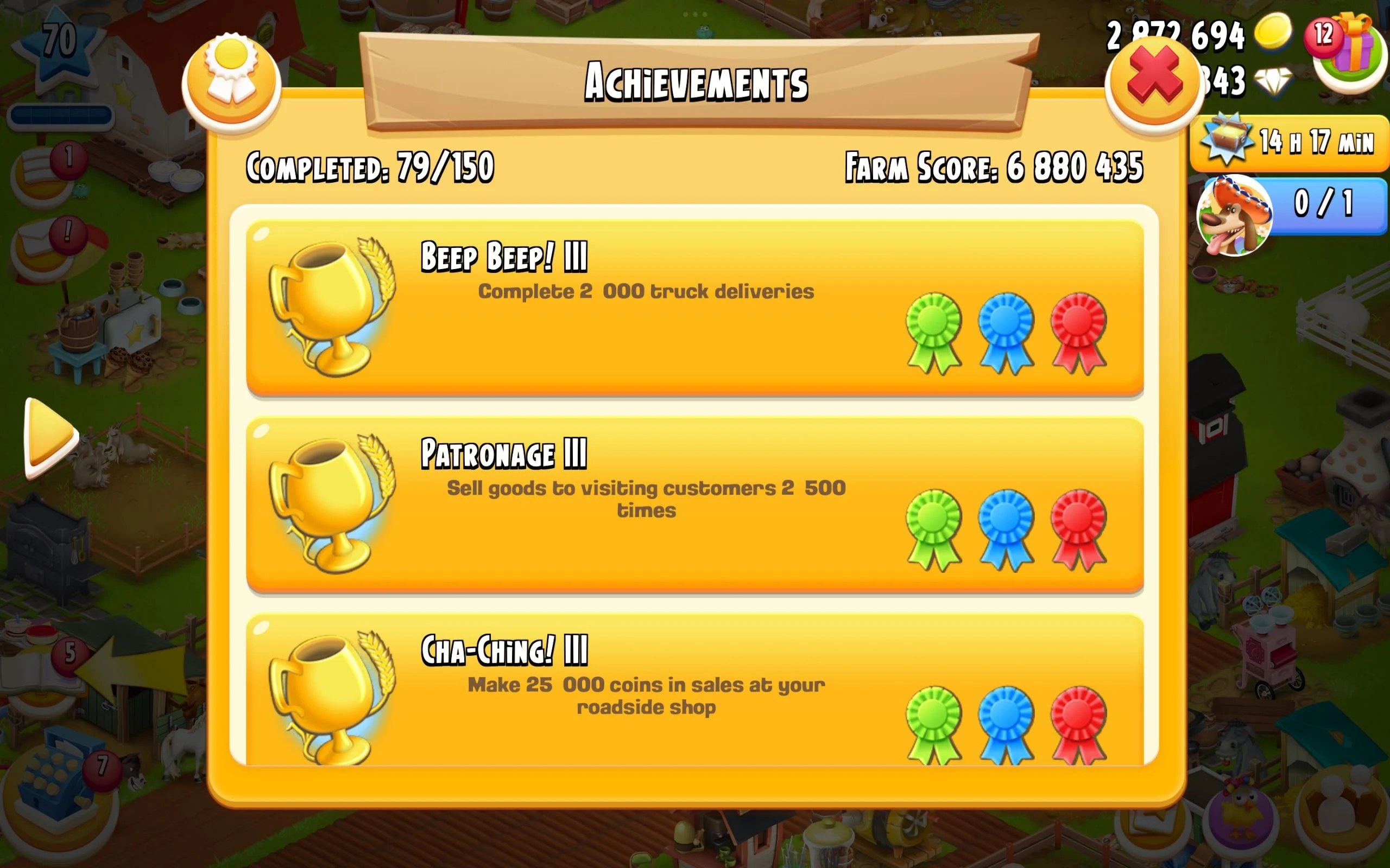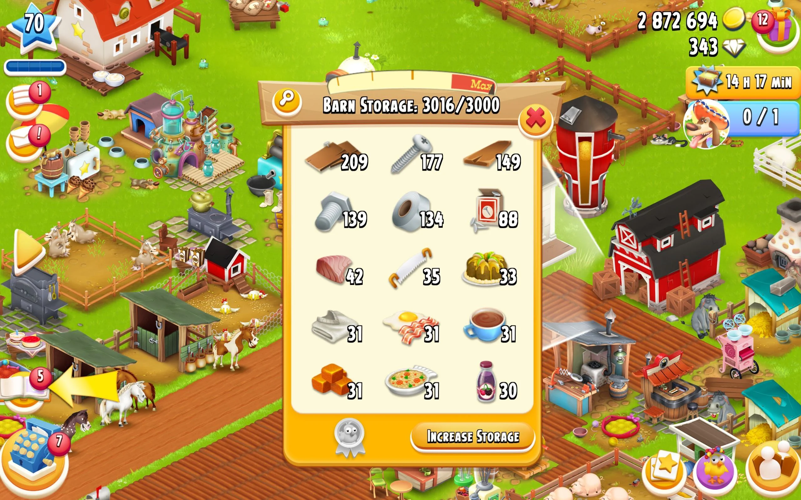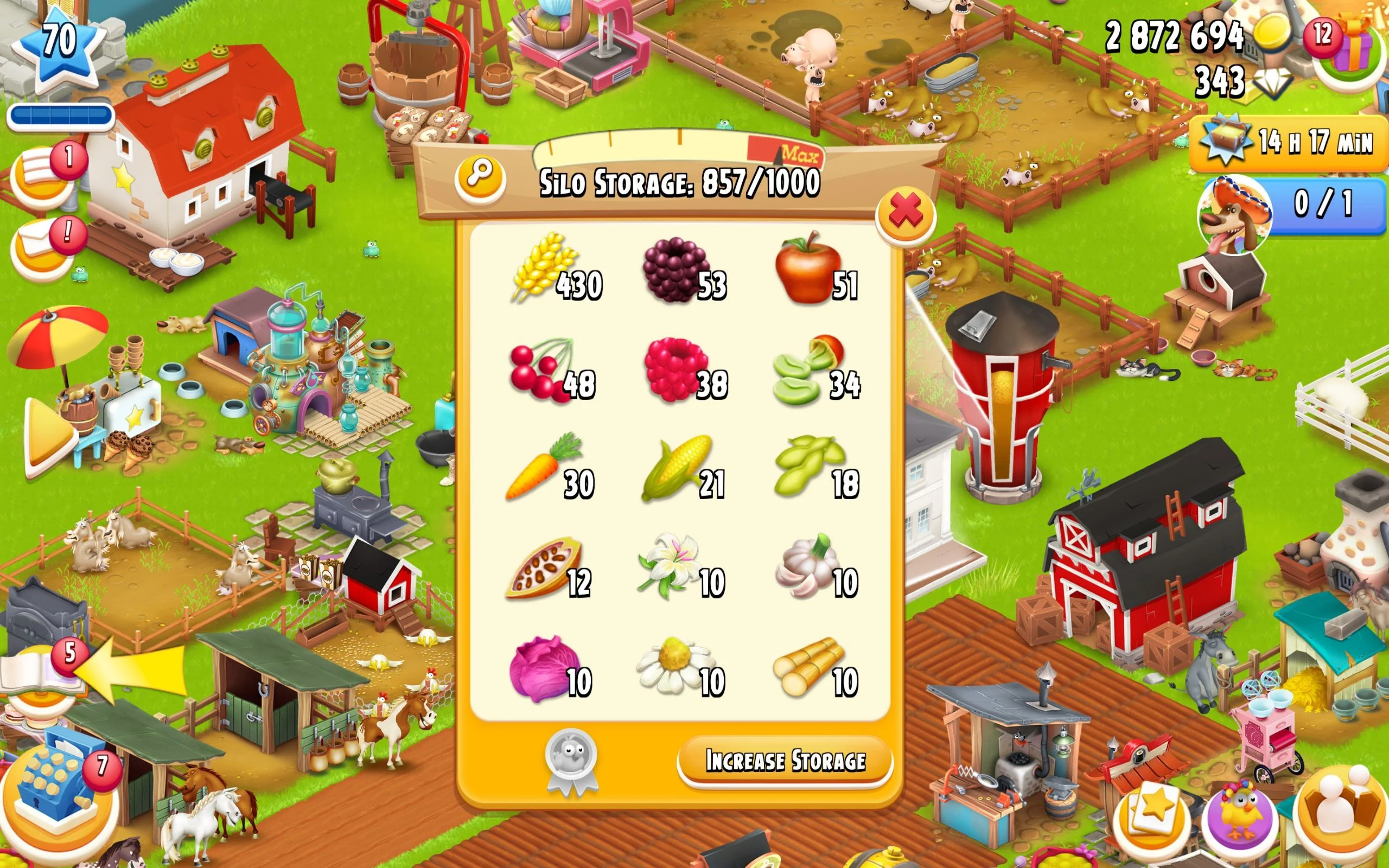 ✨️ CHEAPEST LEVEL 70 HAY DAY FARM 🌾 2872694 COINS🪙 3016/3000 BARN STORAGE💪 857/1000 SILO STORAGE🎯 343 GEMS💎 SUPPORTS BOTH iOS&Android✅️ INSTANT DELIVERY 🚚