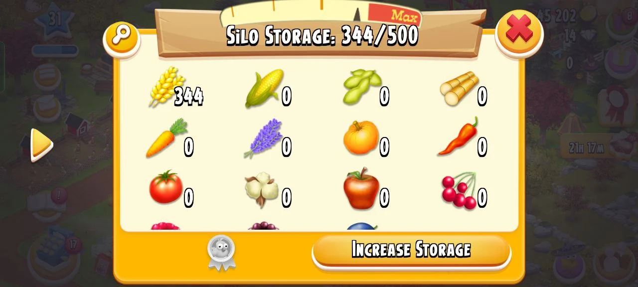 HAYDAY ACC 🥰 31 XP LVL 🌪 1000 BARN STORAGE 🤯 500 SILO STORAGE ♾️ 45,202 GOLD 🦷 IOS/ANDROID ♾️⭐FULL MAIL ACCESS 🔥 FULLY GUARANTEED ✨ INSTANT DELIVERY