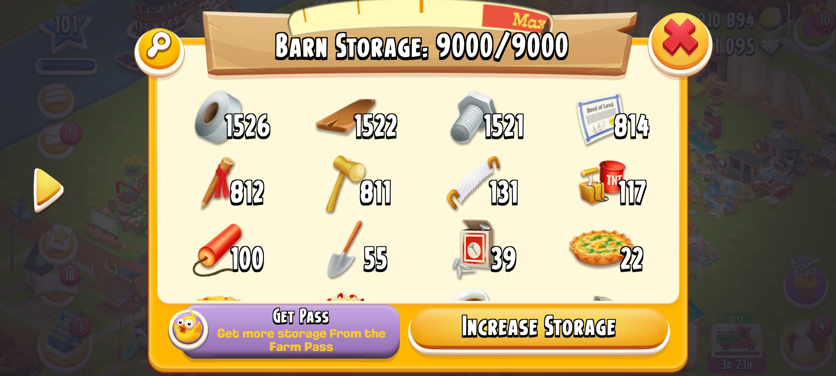 🏆 LEVEL 101🏚️ 9000 Barn Storage🛠️ Fully Filled With Tools🌍 Main Land Open🌾 3050 Silo Storage💰 14M+ Coins & 💎 1095 Diamonds⚡ Instant Delivery