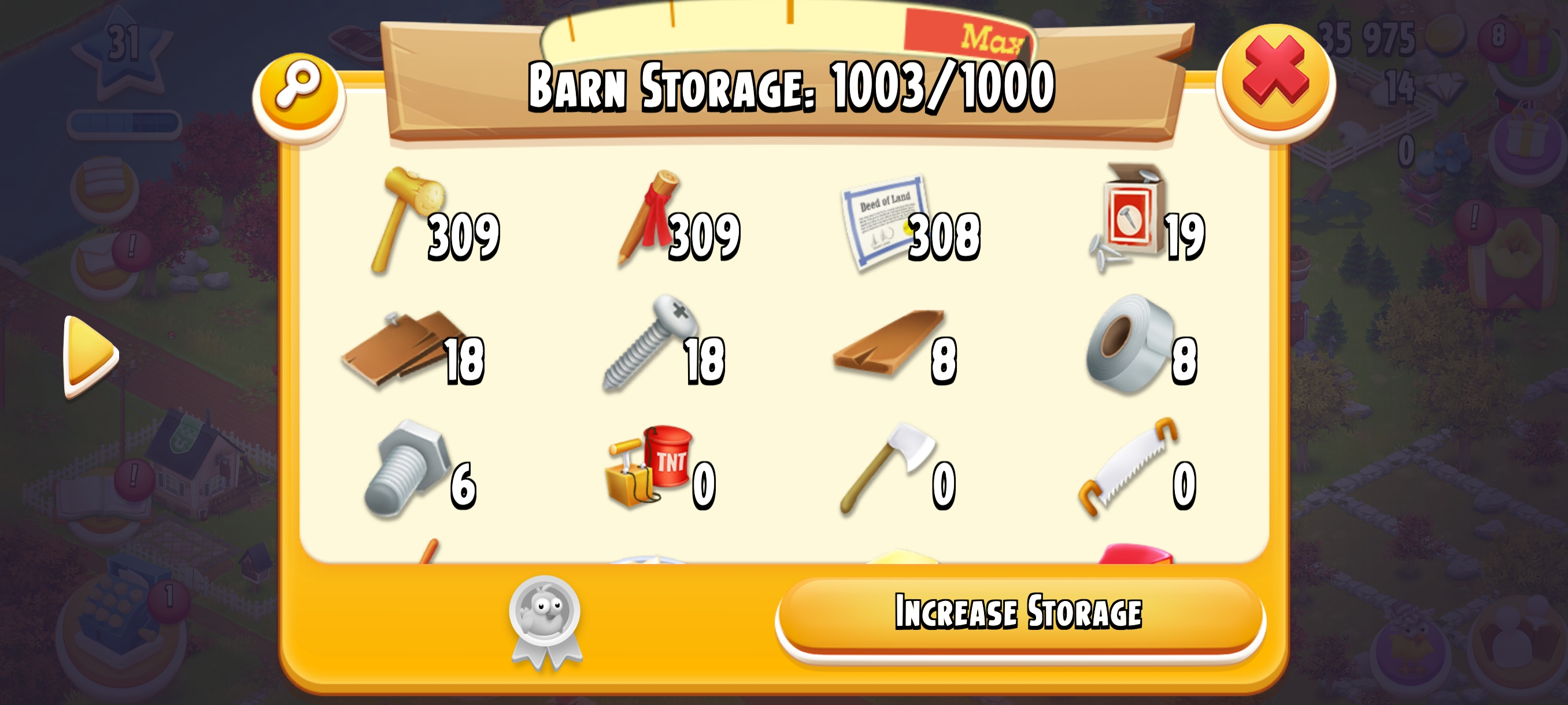 ð LEVEL 31 ðïļ 1000 Barn Storageð ïļ Fully Filled With Toolsð Main Land Openðū 500 Silo Storageð° 35k+ Coins & ð 14 Diamonds⥠Instant Delivery