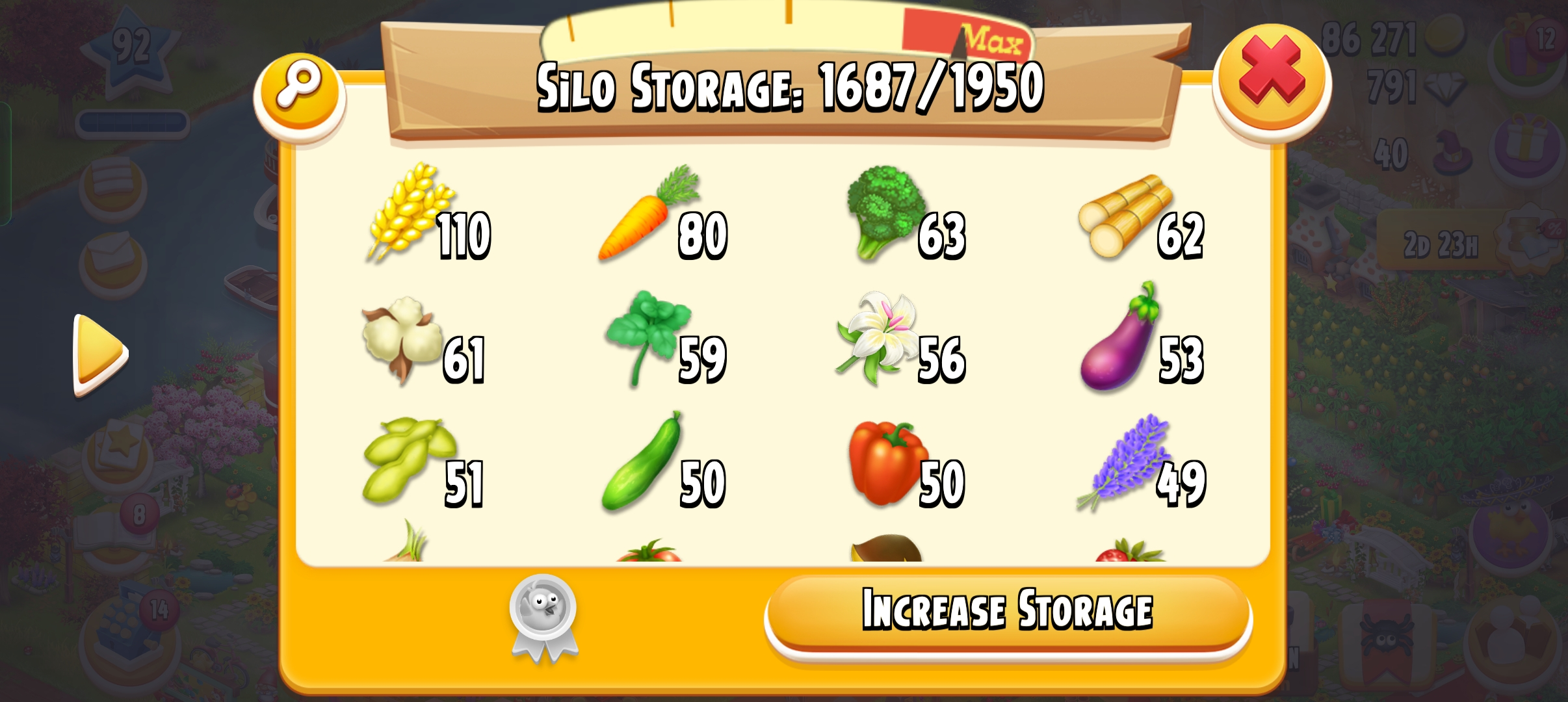 🏅 Premium Acc ever 🙂 High Level Acc 🧺 92 Level 🔥 1750 Barn Storage 🛠️ Attractive & Decorative base 🎉 1950 Silo Storage💰86270 Coins & 790 Diamonds 😇 Fully decorative farm ☺️ Instant Delivery 🚚